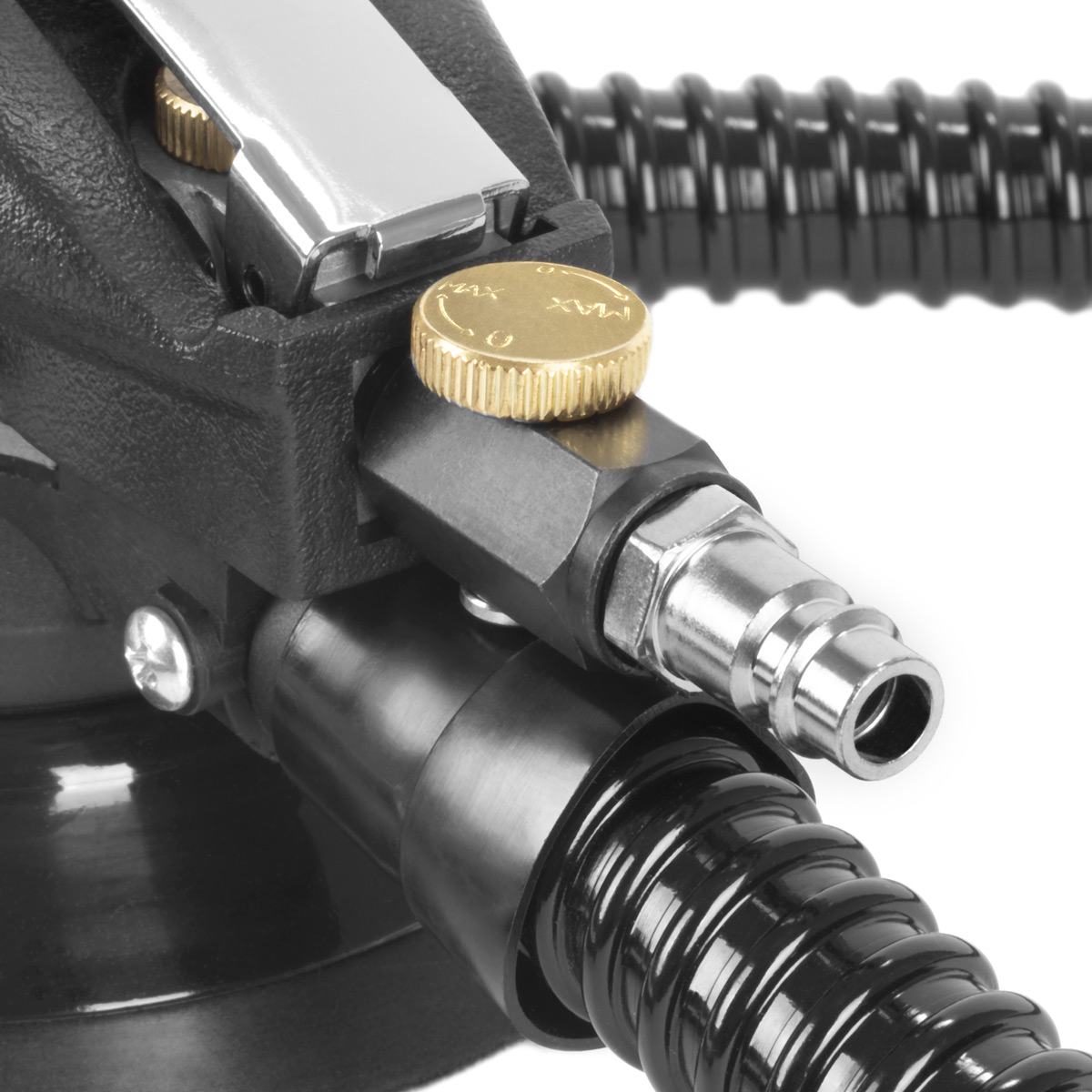 Snažna STAHLWERK ekscentrična orbitalna brusilica svestran je alat idealan za poliranje obojenih površina i brušenje metala, plastike i drva. Teška samo 1 kg, ova pneumatska brusilica može se sigurno, precizno i ​​intuitivno koristiti jednom rukom. Njena visoka maksimalna brzina od 11 000 o/min pruža izvrsne performanse i učinkovit rad. Polirka ima praktičan sustav za usisavanje prašine s crijevom od 115 cm i vanjskom vrećicom za prašinu za čist rad. Čičak traka na brusnoj ploči omogućuje brzu i jednostavnu zamjenu pločice. Kompaktni dizajn brusilice također osigurava jednostavnu zamjenu pločice. Polirka ima ugrađenu kontrolu brzine za različite primjene.