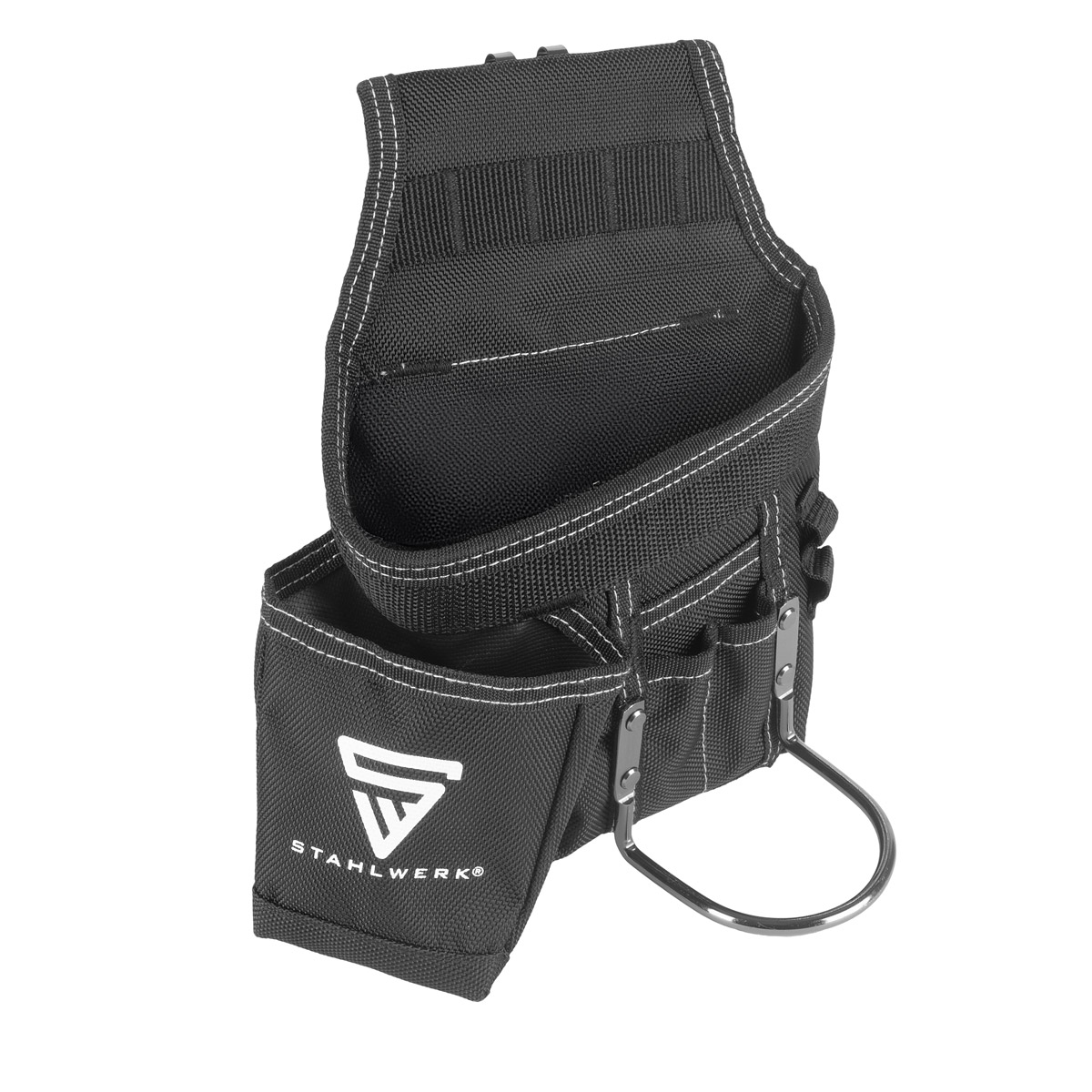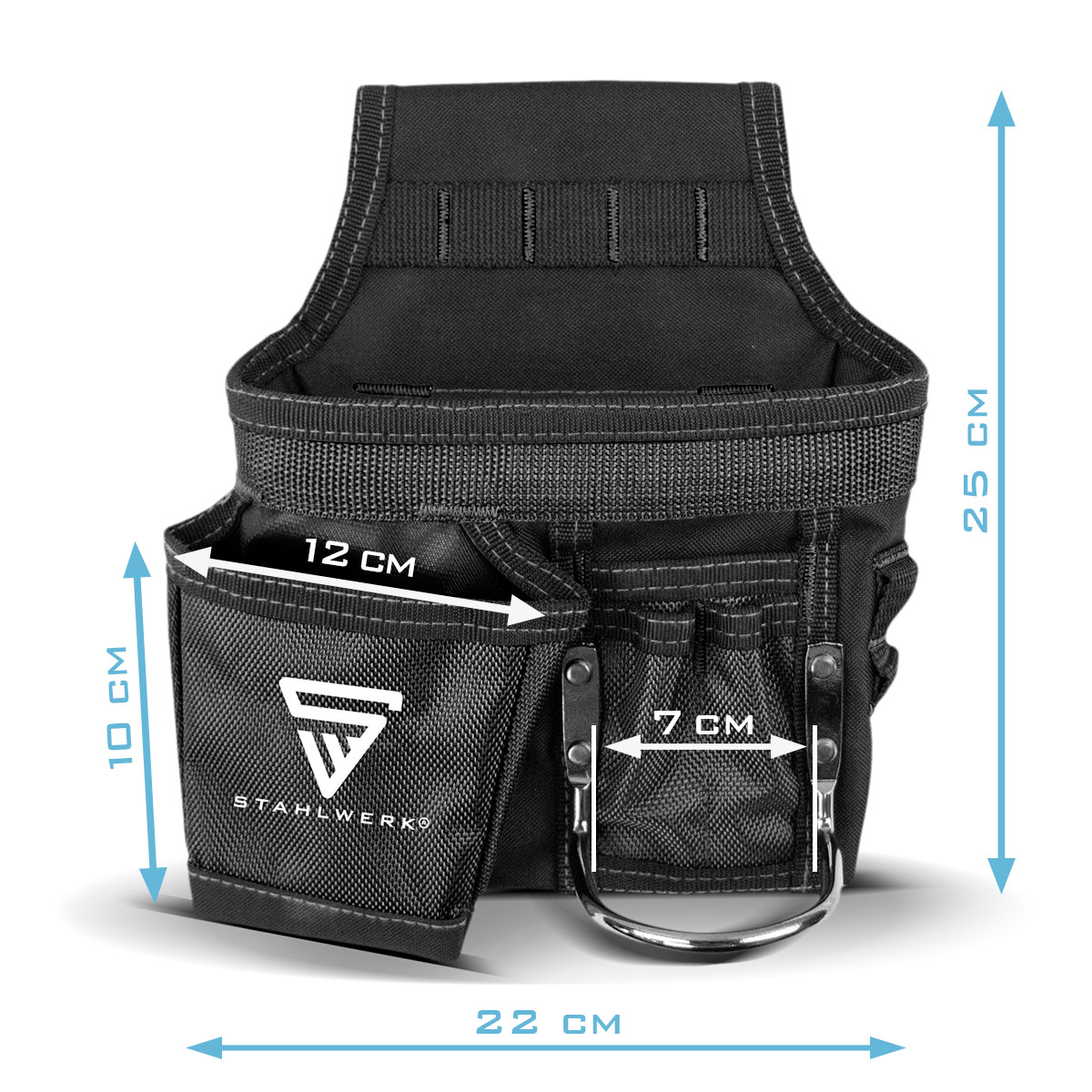 - Čvrsta poliesterska tkanina jamči da je pojas za alat posebno otporan na kidanje, vodoodbojan i izdržljiv. Čvrsti dvostruki šavovi osiguravaju dodatnu izdržljivost.