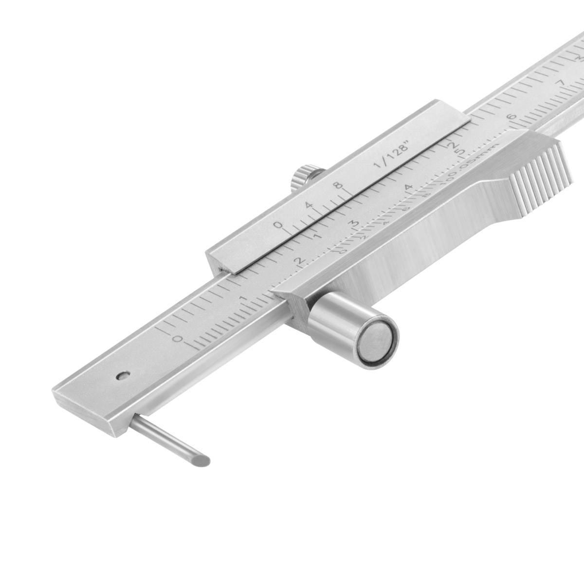 - Pomično mjerilo karakterizira visoka točnost mjerenja s nonius skalom od 1/20 mm | Skala od 1/128 inča je vrhunske izrade i ima lako čitljivu, kromiranu i graviranu skalu.