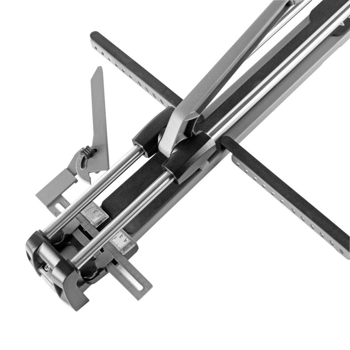 Profesionalni rezač pločica STAHLWERK idealan je za precizno rezanje i odvajanje keramičkih pločica. S duljinom rezanja od 600 mm, dijagonalnom duljinom rezanja od 425 mm i kapacitetom rezanja od 14 mm, ovaj ručni rezač pločica lako se nosi čak i s pločicama velikog formata. Osnovna ploča otporna na torziju, snažan sustav rezanja i dvostruko vođena vodilica debljine 20 mm s kugličnim ležajevima osiguravaju nesmetan rad i savršenu kvalitetu rezanja. Rezač pločica ima izvrsnu lomnu silu na donjoj oštrici i lako zamjenjivi, visokoučinkoviti rezni kotač, što jamči rezove najveće preciznosti. Rezač ima bočne krakove koji se preklapaju 300 mm s praktičnim potpornim nožicama za rezanje pločica velikog formata. Podesiva paralelna vodilica s kutom rezanja od 0-60 stupnjeva izrađena je od visokokvalitetnog lijevanog aluminija.