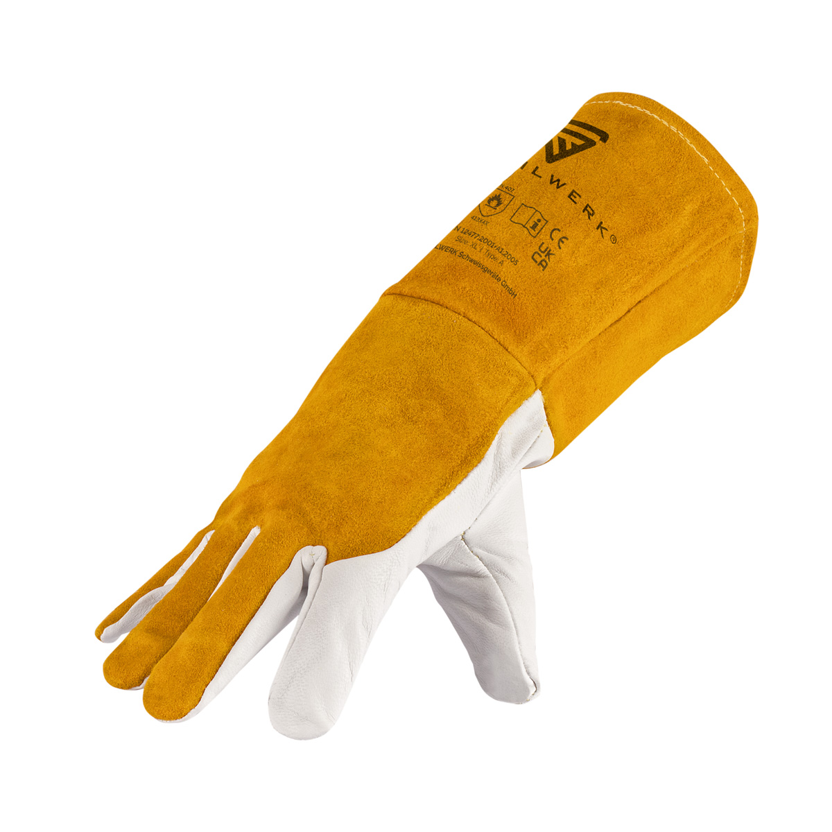STAHLWERK rukavice za zavarivanje/radne rukavice, visokokvalitetna zaštitna odjeća izrađena od izdržljive prave kože za TIG/MIG/MAG/MMA/plazma zavarivanje, otporne na toplinu i vatru, otporne na habanje, otporne na rezanje, izvrsna udobnost nošenja, bijelo-žute boje.