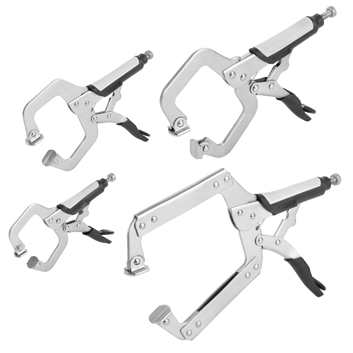 - Uključuje četiri kliješta za stezanje u obliku slova C s različitim širinama čeljusti od 6 do 14 inča za sve vrste stezanja i pričvršćivanja. Ova kliješta za stezanje posebno su idealna za zavarivanje i rezanje.