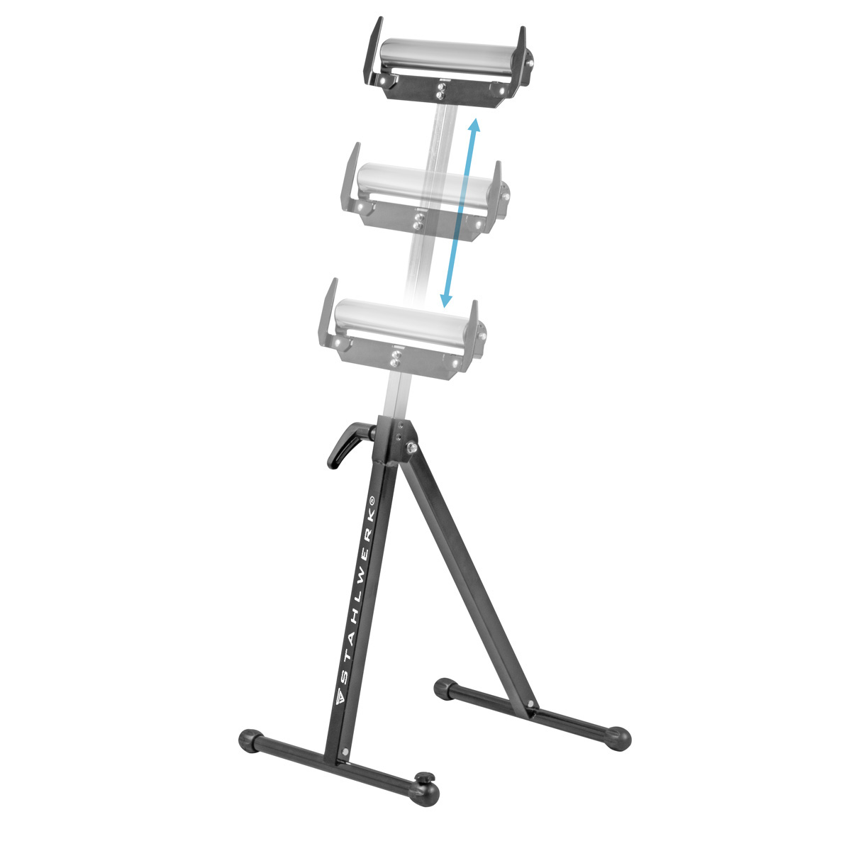 Nezamjenjiv u svakoj radionici: STAHLWERK stalak s kotačićima služi kao praktično produžetak radnog stola i idealno je pomagalo za rad s dugim i glomaznim obradcima. Svestrani stalak s kotačićima kontinuirano se podešava po visini od 720 do 1100 mm i, s nosivošću od 60 kg, može podnijeti čak i teška opterećenja. Metalni valjak s glatkim hodom širok je 30 cm i ima dva sklopiva krila koja sigurno fiksiraju obradak kada je potrebno i sprječavaju klizanje. Robusni čelični okvir otporan je na torziju i daje sklopivom stalku maksimalnu stabilnost. Univerzalni radni stalak može se postaviti u samo nekoliko koraka i spreman je za trenutnu upotrebu. Stabilne noge s prianjajućim, protukliznim profilom osiguravaju sigurno držanje. Integrirani vijak za niveliranje omogućuje brzo izjednačavanje neravnih podova. Za praktičan transport i uštedu prostora u skladištenju, kompaktni stalak se lako sklapa.