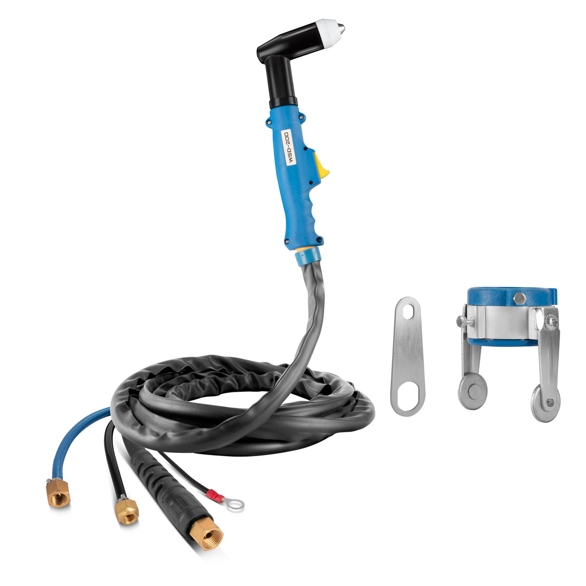 • Visokoučinkoviti STAHLWERK WSD-200 plamenik za plazma rezanje s vodom hlađenim paketom crijeva od 5 metara i odvojenim odstojnikom | Vodilica s valjcima za profesionalno rezanje s CUT plazma rezačima.