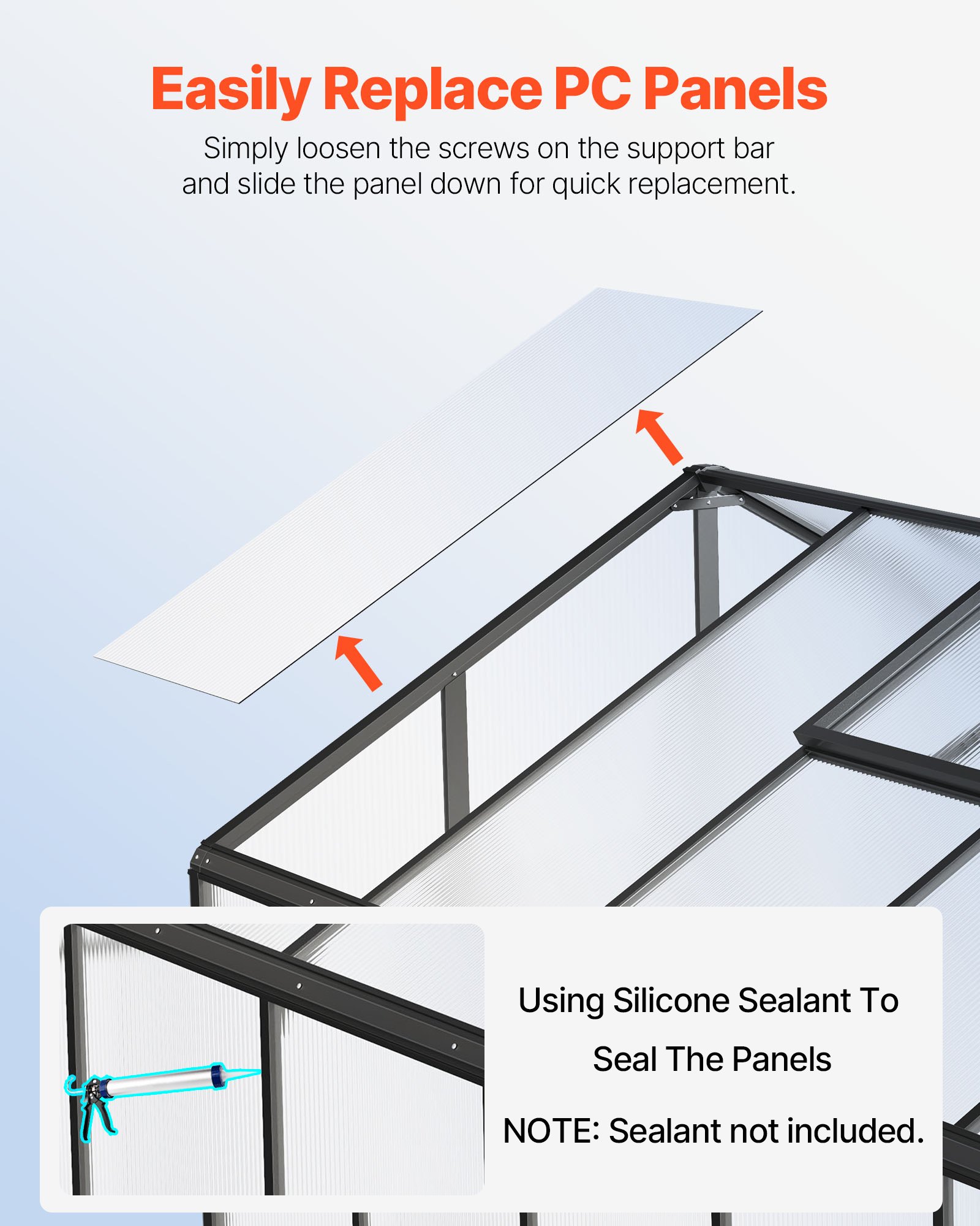 VEVOR Staklenik od polikarbonata, 236x289x206 cm, Kućica za biljke s ventilacijskim prozorima, Staklenik u stilu paviljona s vratima na šarke, Komplet za aluminijski staklenik za vanjske vrtove