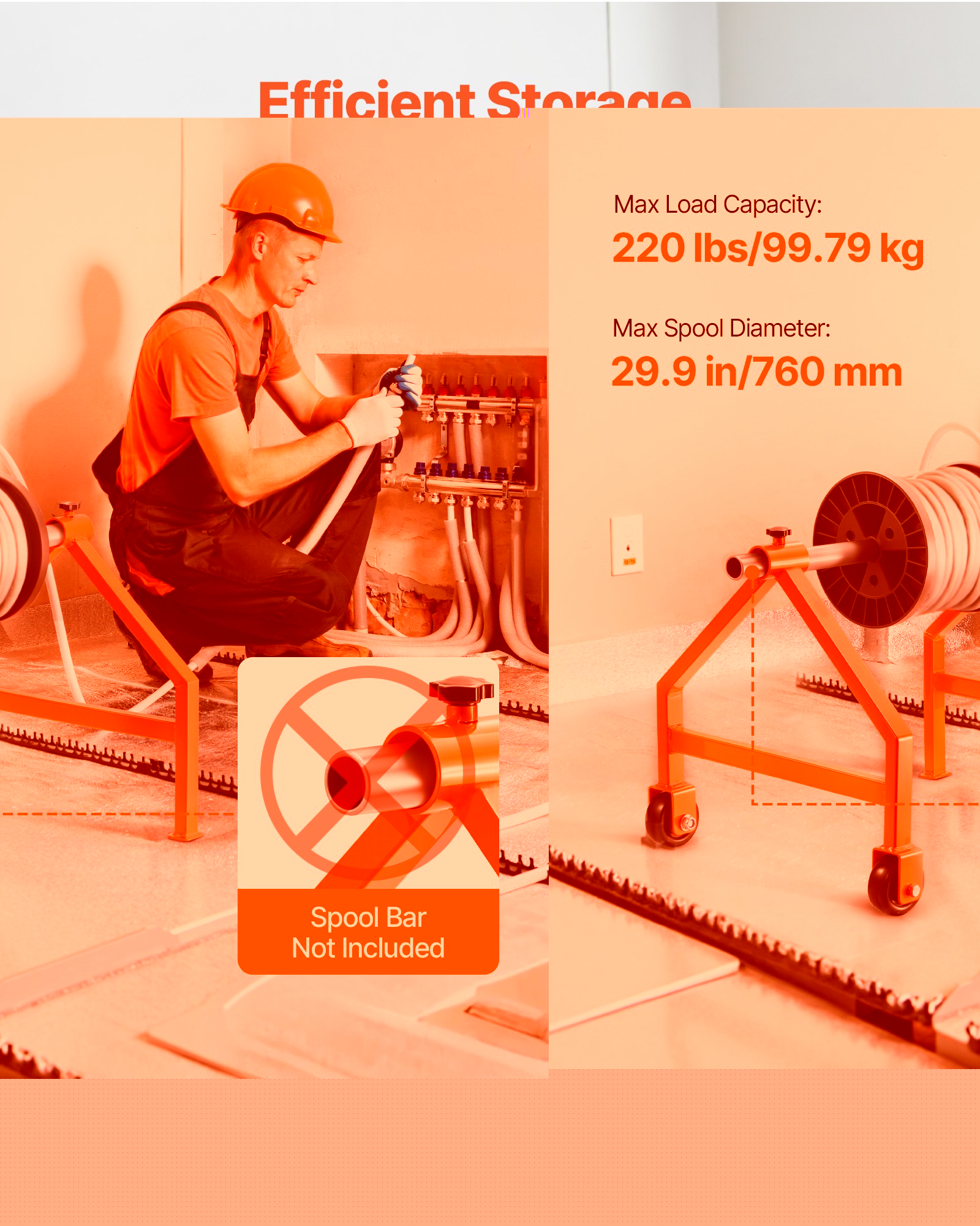 VEVOR stalak za kalemove žice, nosivost 100 kg, prijenosni stalak za kabel s kotačima, za pohranu kalemova do φ76 cm u raznim uvjetima, cijev nije uključena