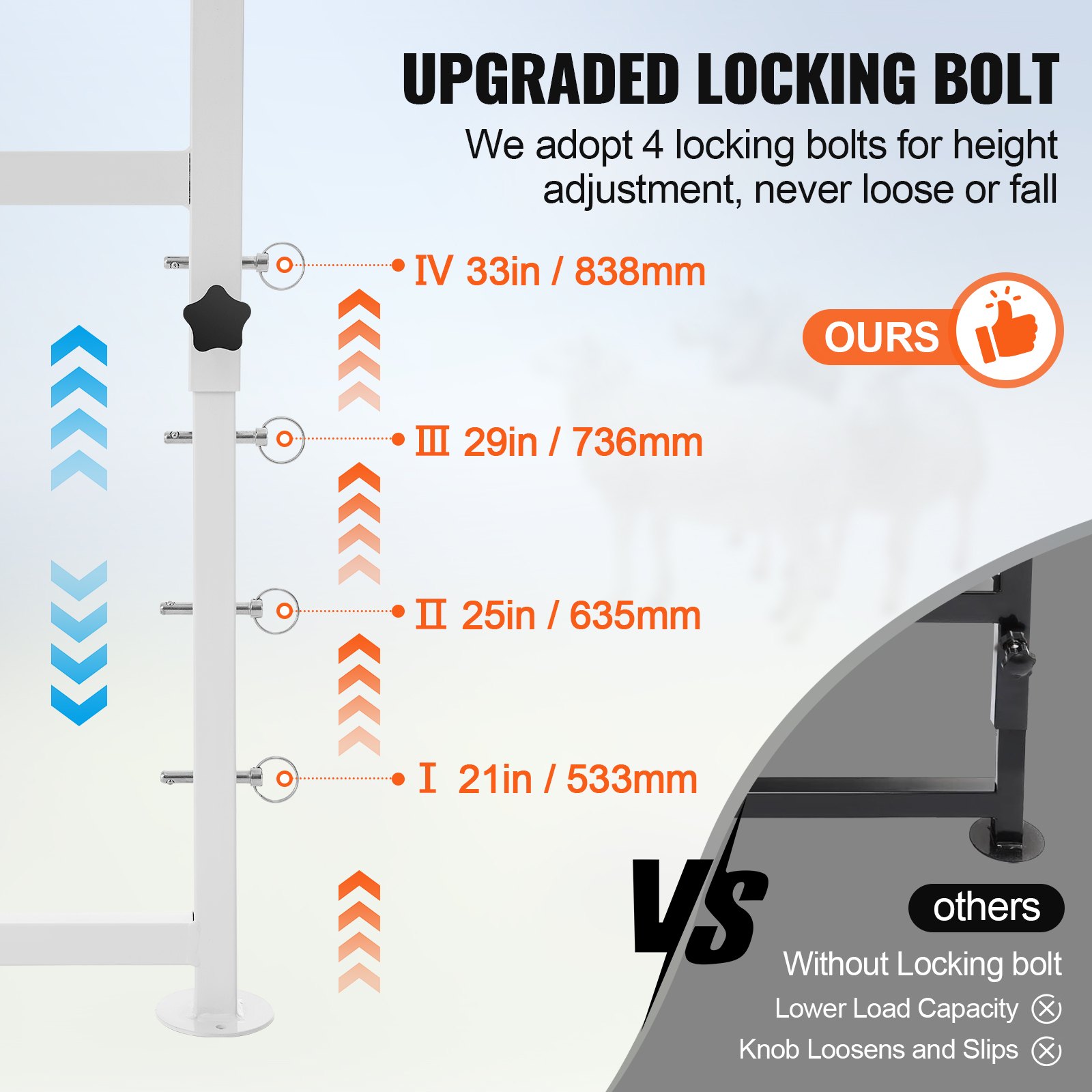 VEVOR štala za koze i ovce, štala za stoku 1295 x 584 mm, metalna štala za mužnju i striženje, podesiva visina od 533 do 838 mm, s naglavnim dijelom i remenom za nos, nosivost 227 kg, bijela
