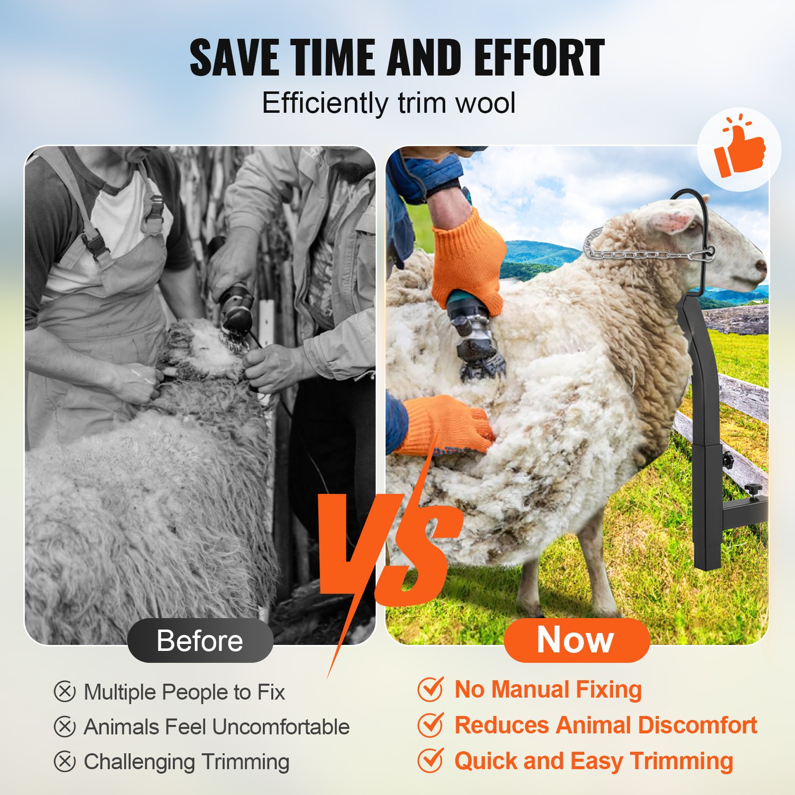 VEVOR Stalak za obrezivanje stoke, Stalak za koze i ovce, 238-325 mm, Podesiva visina, Širina 0-138 mm, Metalni stalak za mužnju i striženje koza, Pričvršćivanje za nosni remen, Navlaka za glavu, Crni