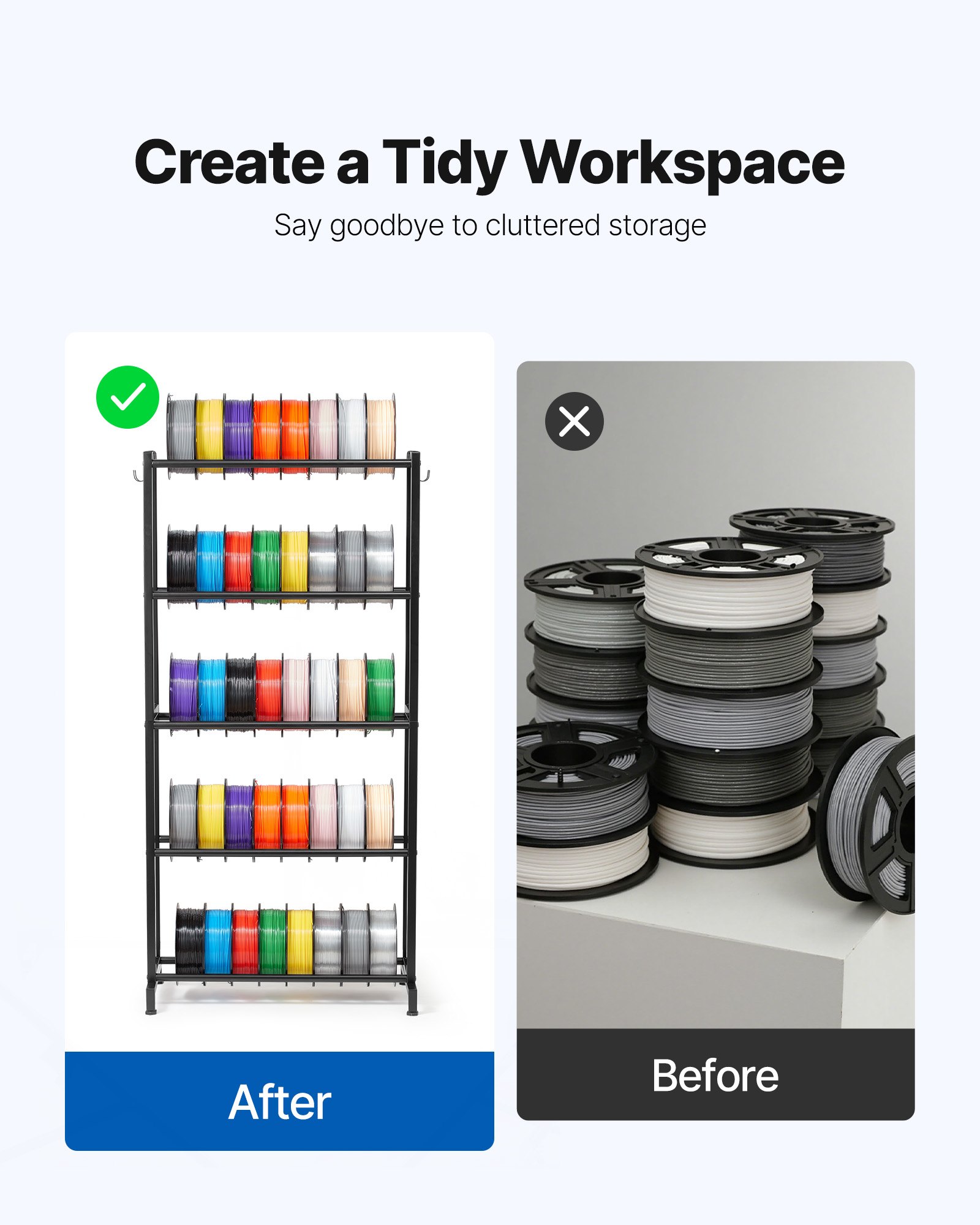 VEVOR stalak za pohranu filamenta za 3D pisače, 5 slojeva, držač kalema filamenta, 635 x 320 x 1300 mm, nosivost 45,3 kg po sloju, organizator pribora za 3D pisač za 3D studio za ispis, radionicu, crni