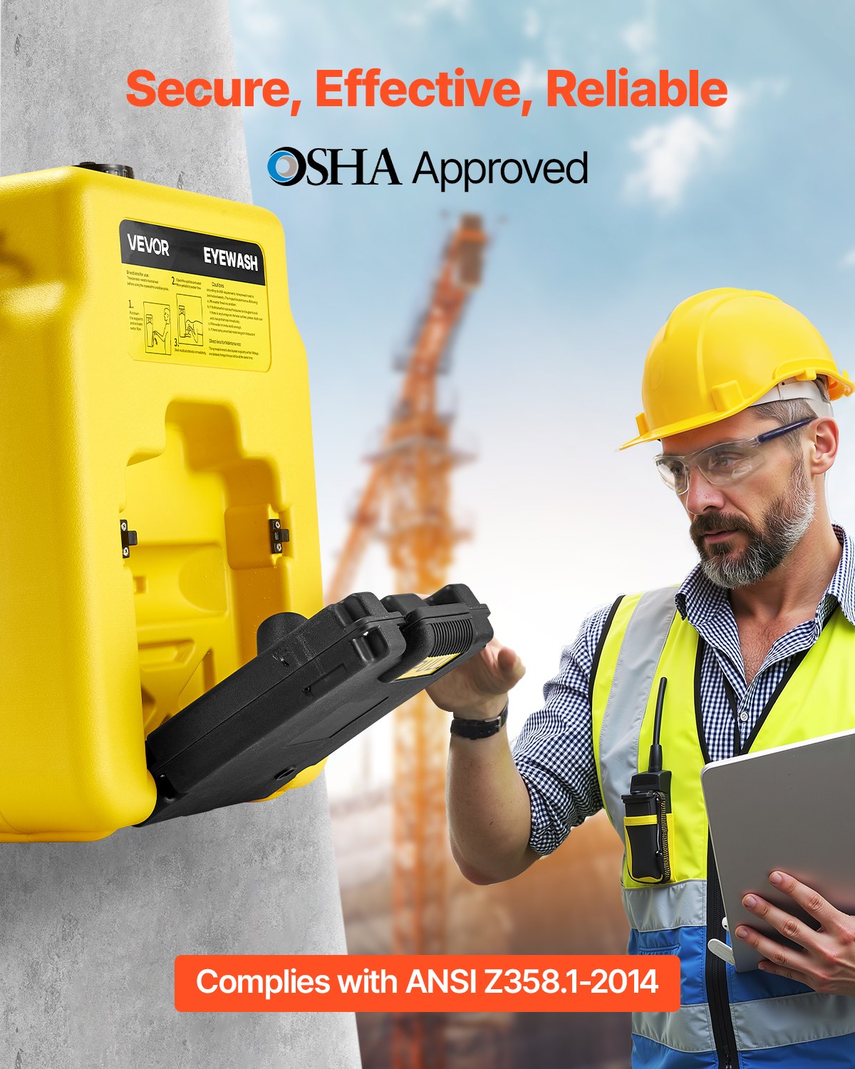 VEVOR stanica za ispiranje očiju 53 L, OSHA-odobrena zidna/ravna stanica za ispiranje očiju, uređaj za ispiranje očiju s dvije mlaznice, jedinice za ispiranje očiju za prvu pomoć za škole, laboratorije, tvornice, žuta