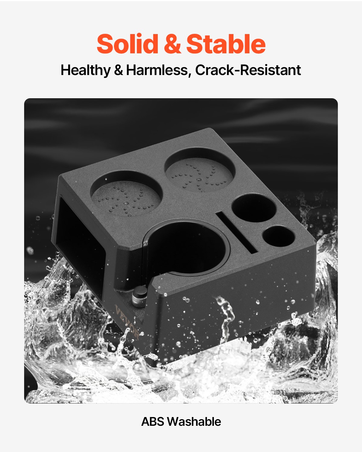 VEVOR stanica za tampiranje espressa izrađena od ABS-a, 7 u 1 višenamjenska stanica za tampiranje s uklonjivim utorom, kutija za espresso s neklizajućom bazom, odgovara ručkama od 51-58 mm, crna