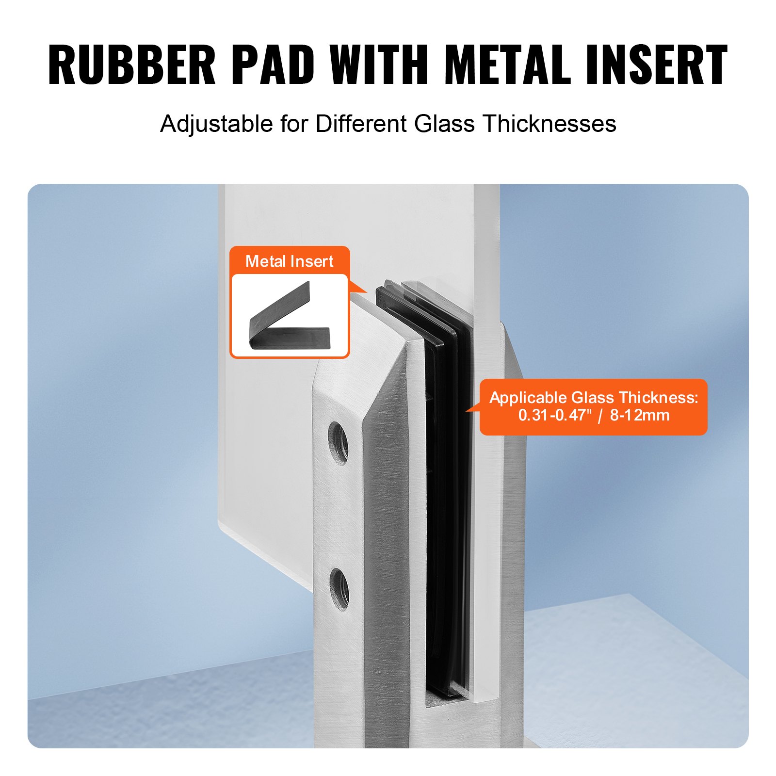 VEVOR Staklena stezaljka, Pakiranje od 10 kvadratnih nosača za staklenu ogradu za kaljeno staklo 0,31″-0,47″, Stezaljka za montažu stakla od nehrđajućeg čelika 304, Nosač za staklenu policu debljine 0,12″ za balkon, vrt, stepenice, Srebrna