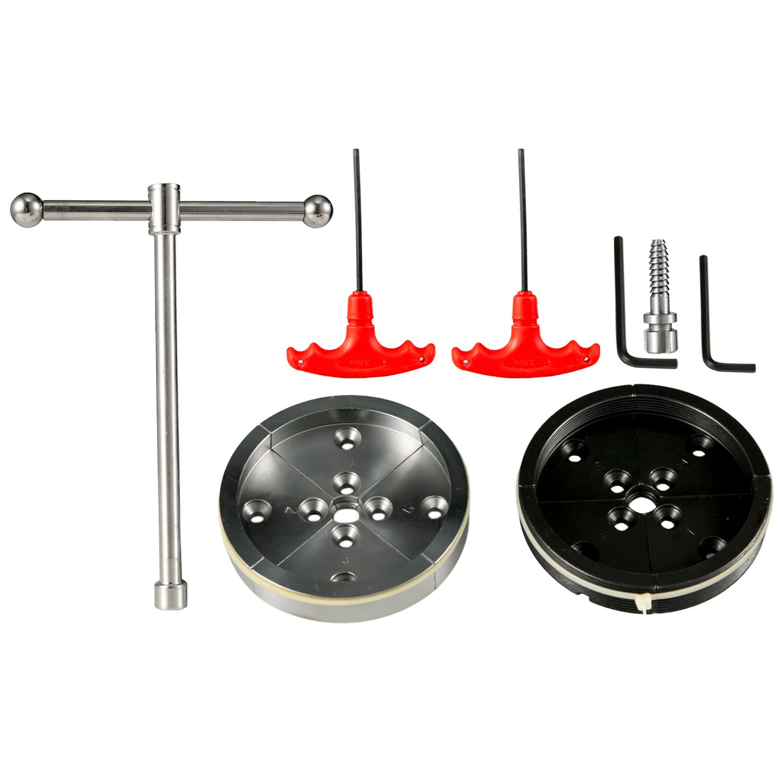 Promjer stezne glave: 9,7 cm (3,8 in), Raspon stezanja prednje čeljusti: 6-45 mm (0,3-1,8 in), Promjer predmeta: 10,1 cm (4 in), Raspon stezanja stražnje čeljusti: 65-100 mm (2,6-4 in), Materijal: Čelik, Težina: 6,8 kg (15 lbs)
