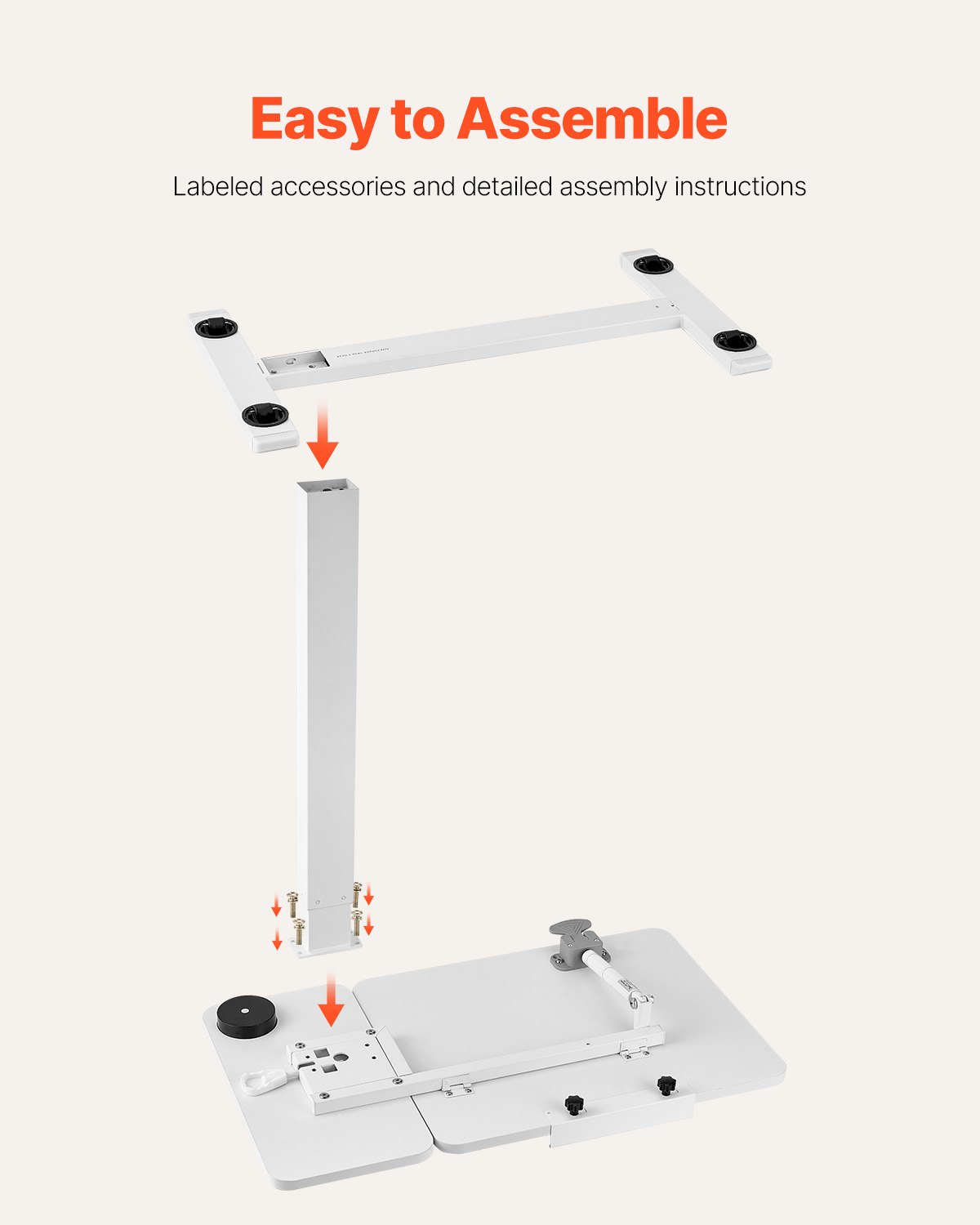 VEVOR Nadkrevetni stolić, Mobilni bočni stolić sa sklopivom radnom površinom i 4 skrivena kotačića, Stol za prijenosno računalo s podesivom visinom i kutom, Noćni stolić s držačem za čaše za ured