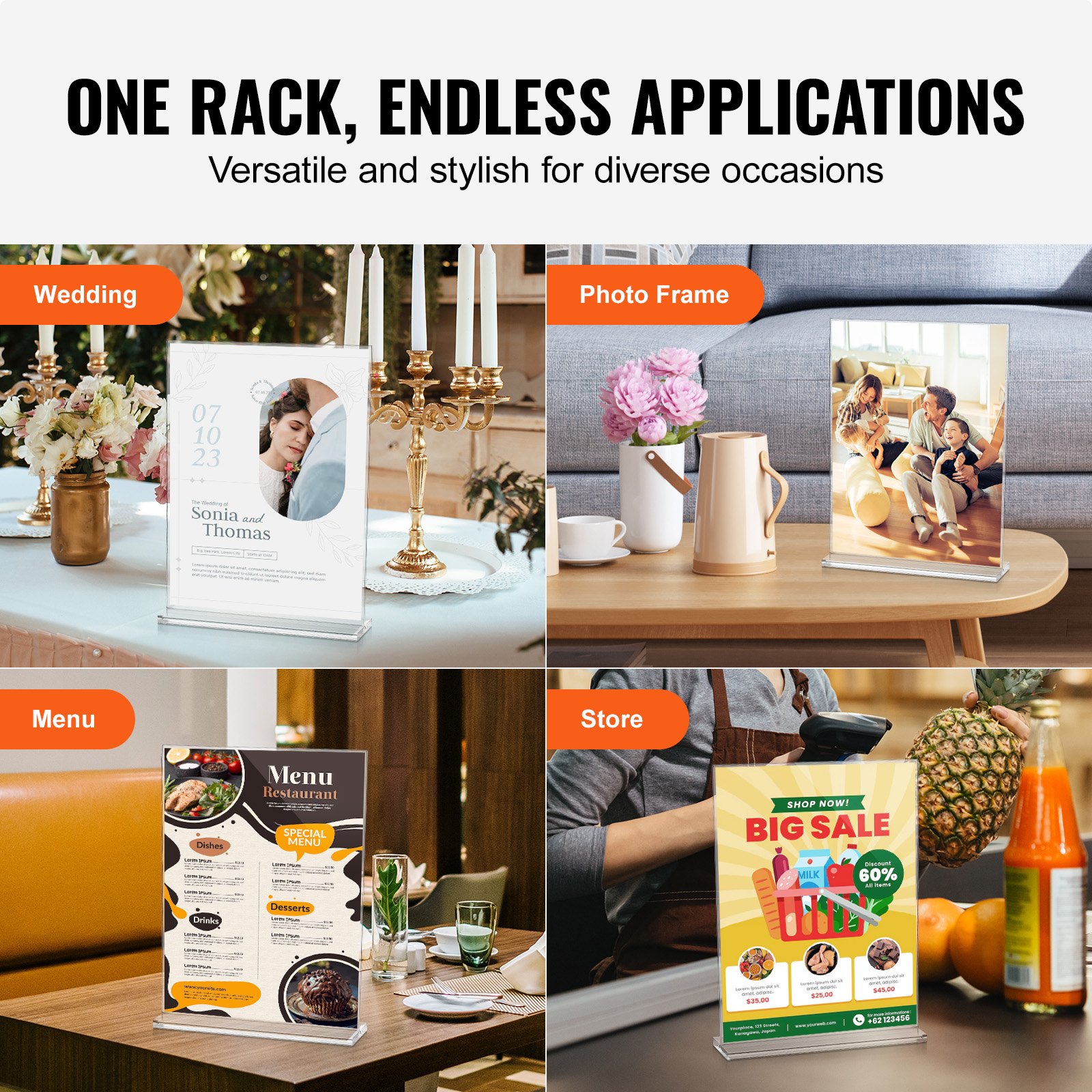 VEVOR stolni stalak za natpise, 6 kom. Držač za brošure 223,52 x 279,4 mm, dvostrani stalak za natpise u obliku slova T, prozirni akrilni držač jelovnika za restoran, ured, vjenčanje, bar