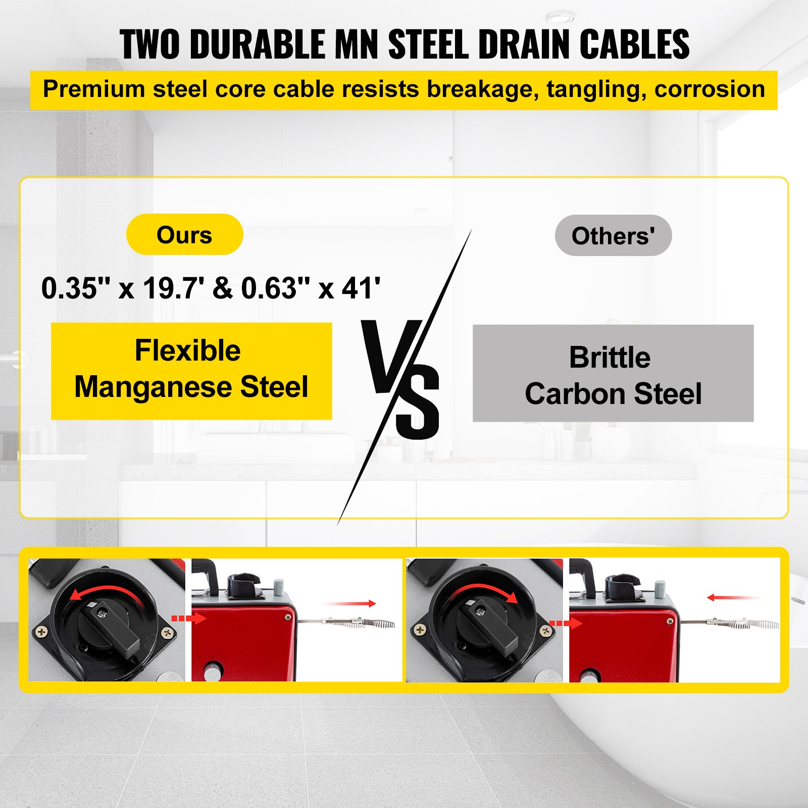 VEVOR Stroj za čišćenje cijevi 390 W Spiralni uređaj za čišćenje cijevi 15 mm x 13 mm Kompaktni električni čistač odvoda s 8 izmjenjivih oštrica Klizni alat s čahurama 1750 o/min za ugradnju cijevi