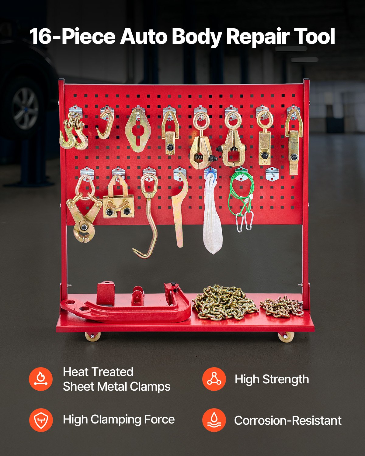 VEVOR Izvlakač i ravnalo za okvir karoserije, oprema za popravak karoserije s napetošću od 6 tona s dizalicom za zračni jastuk od 3 tone i hidrauličnom nožnom pumpom od 45 MPa, uključujući 16 alata za ravnanje, za automehaničarske radionice