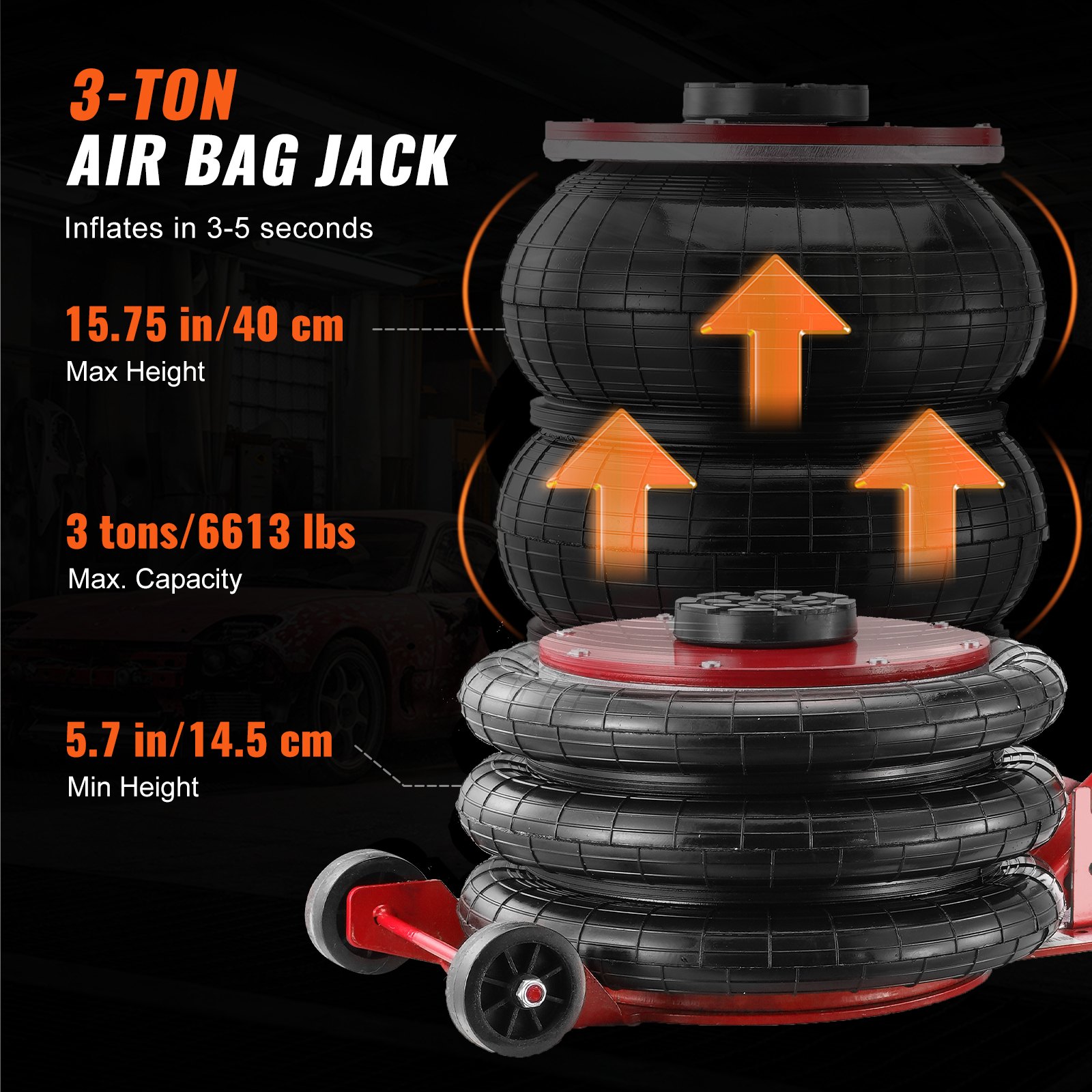 Veličina proizvoda: 40,55 x 10,55 x 5,5 in / 103 x 26,8 x 14 cm (nenapuhano), podešavanje položaja: 8 rupa, maks. potisak hidrauličkog cilindra: 15432 lbs / 7 tona, neto težina: 34,83 lbs / 15,8 kg, materijal: Q235B, kut nagiba stražnjeg stupa: 35°, radni tlak: 0,8-1,0 MPa, nosivost kuke: 6613 lbs / 3 tone, materijal: guma, promjer valjka: φ2,95 in / 75 mm, Promjer lanca: ∅0,4 in / 1 cm, Duljina lanca: 118 in / 3 m, Potreban dovod zraka: 0,6-1 MPa, Podizač zračnog jastuka:, Raspon podizanja: 5,7-15,75 in / 14,5-40 cm, Broj modela artikla: JT-19, Maksimalni tlak hidrauličkog sustava: 45 MPa, Kut zakretanja stupa: -60°, -45°, -30°, -15°, 0°, 15°, 30°, 45°, 60°, Broj valjaka: 8, Dimenzije proizvoda: 98,43 x 74,8 x 88,58 in / 2,5 x 1,9 x 2,25 m, Nosivost: 6613 lbs / 3 t, Maks. vučna sila: 13227 lbs / 6 tona