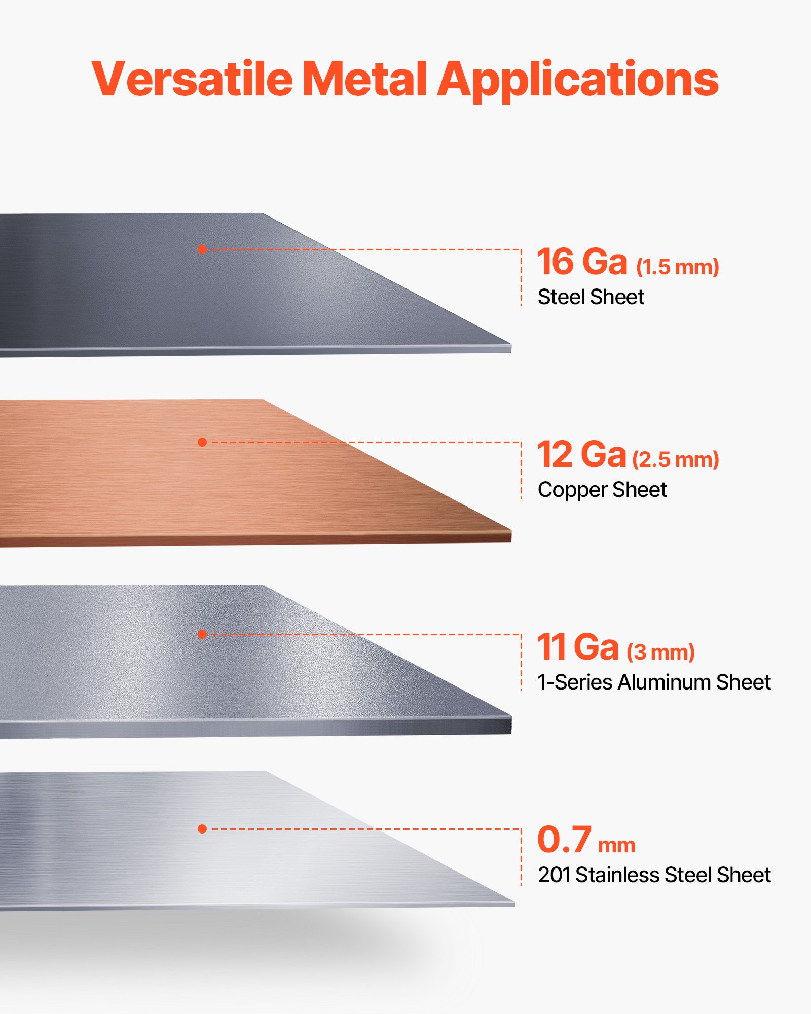 Maks. širina savijanja: 24 in. (610 mm), maks. Debljina savijanja: 16 Ga niskougljični čelik (1,5 mm), Težina: 49,4 kg, Granica razvlačenja materijala: ≤235 MPa, Mehanizam preše: Ručni, Dimenzije proizvoda (s kompenzacijskim čekićem): 39,4 x 12,6 x 17,3 inča (1000 x 320 x 440 mm), Dimenzije okvira: 39,4 x 12,6 x 14,9 inča (1000 x 320 x 380 mm), Veličine segmenata: 5 segmenata (1, 2, 3, 8, 10 inča), Maks. kut savijanja: 135°, Način rada: Montaža na stol, Ručno proširenje, Broj modela artikla: W1.5x610Z, Primarni materijal: Niskougljični čelik, Pomoćna metoda savijanja: Jedan kompenzacijski čekić