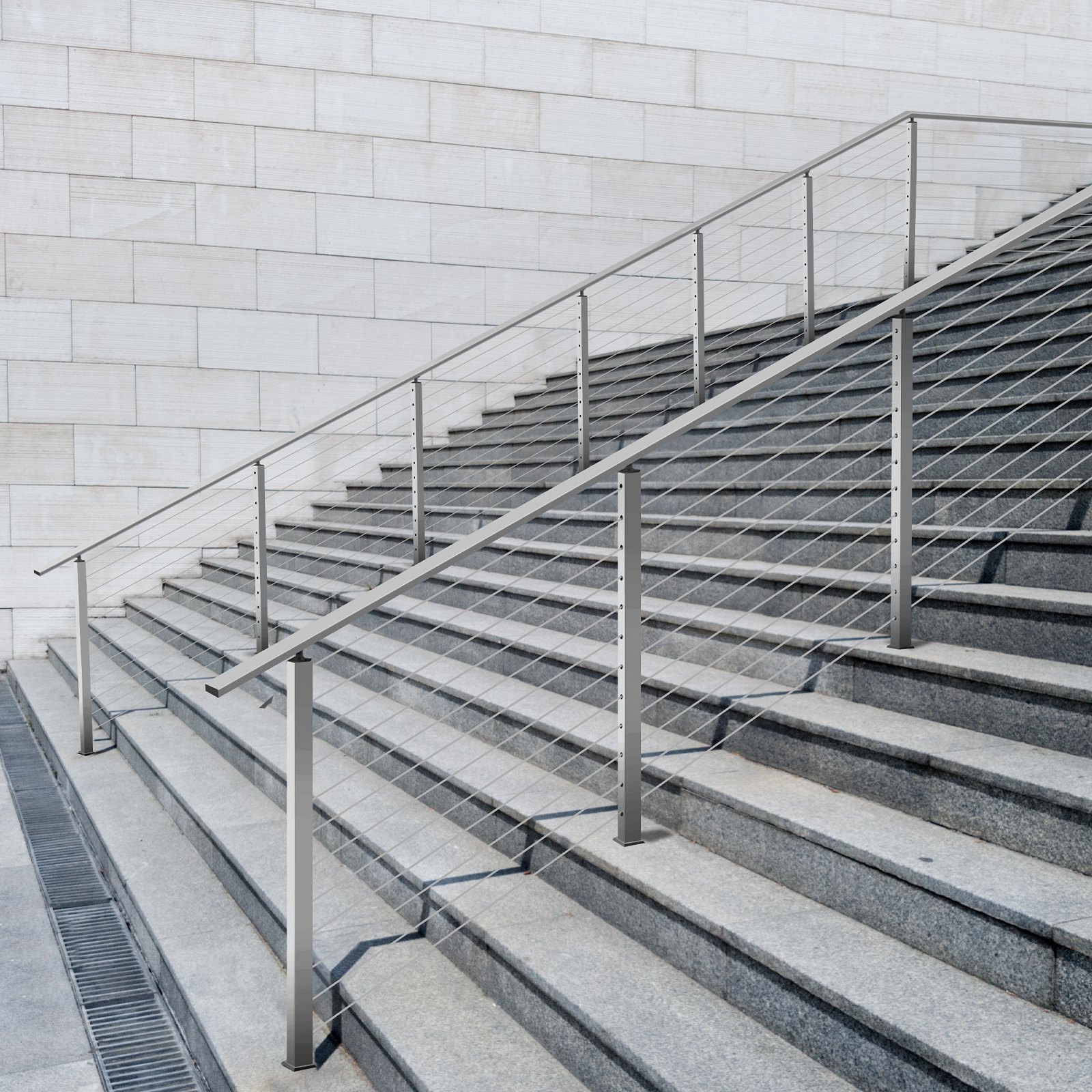 VEVOR Stup zaštitne ograde za kabele, stup zaštitne ograde 107x5x5 cm, s prethodno izbušenim rupama od 30°, nehrđajući čelik s horizontalnim i zakrivljenim nosačem, 1 komad, srebrni, 1JZLGZXYS1062TLWC001V0