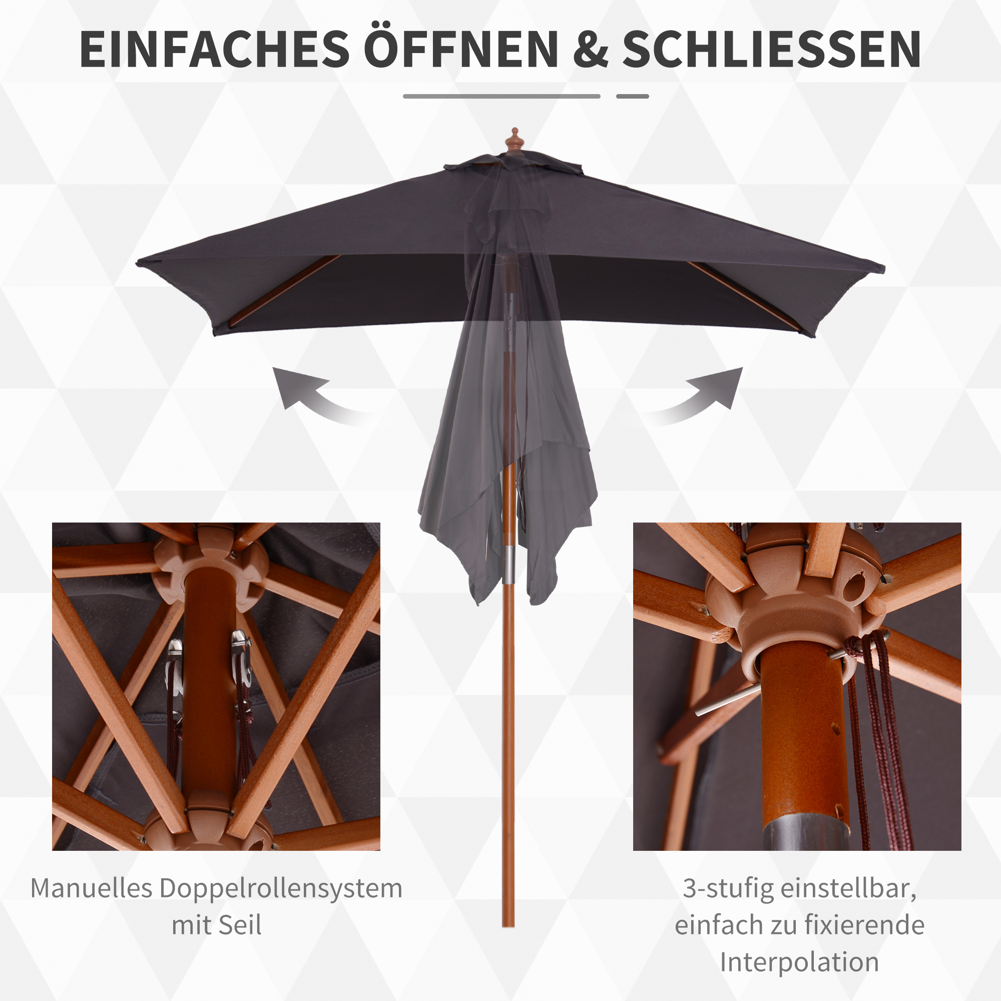 - ✔ Pažnja: Postolje suncobrana nije uključeno