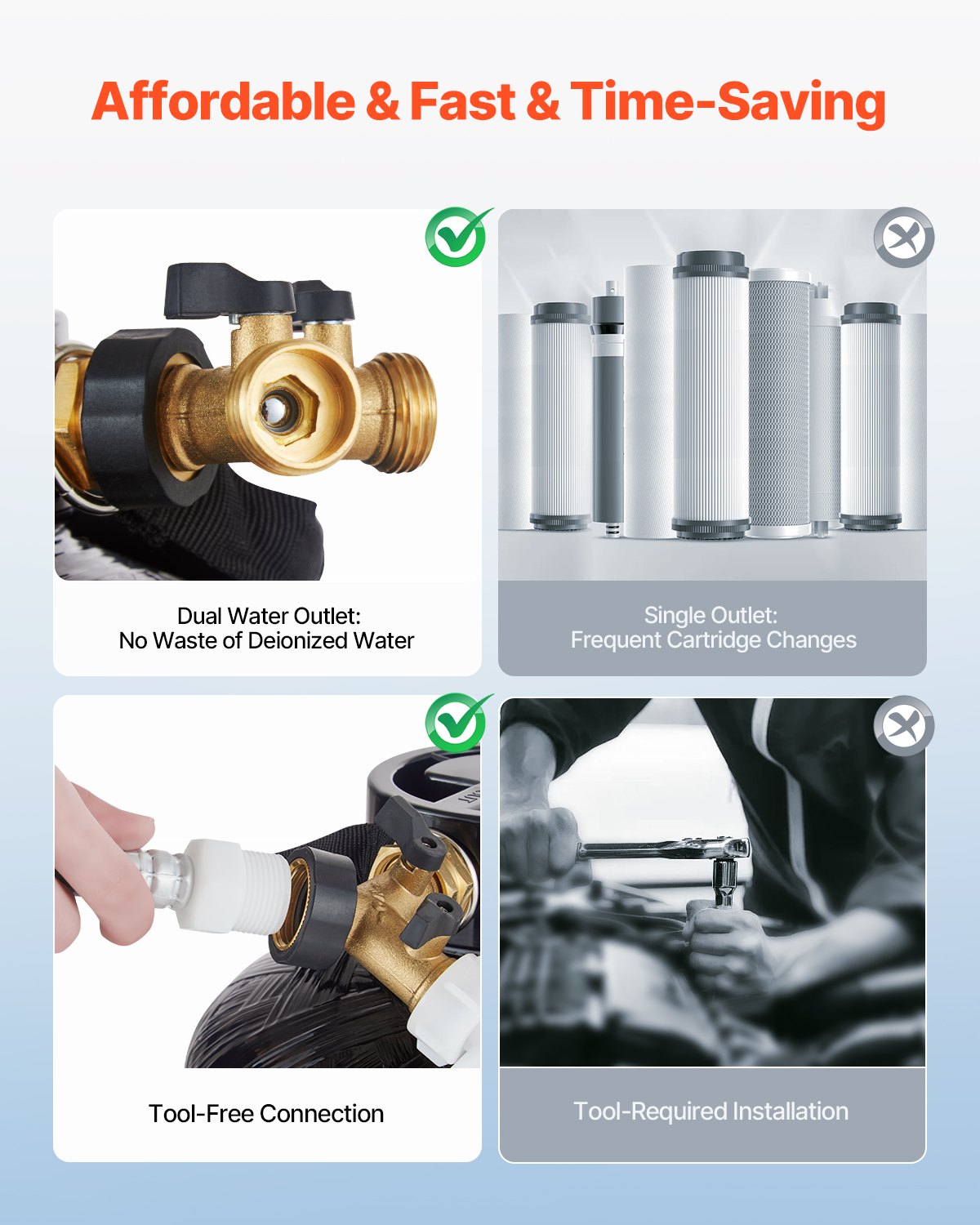 VEVOR sustav deionizirane vode za autopraonice, deionizator vode s prijenosnim TDS mjeračem, filter za uklanjanje mrlja s vode bez mrlja s dvostrukim izlazom, za kamp-kućice i motocikle