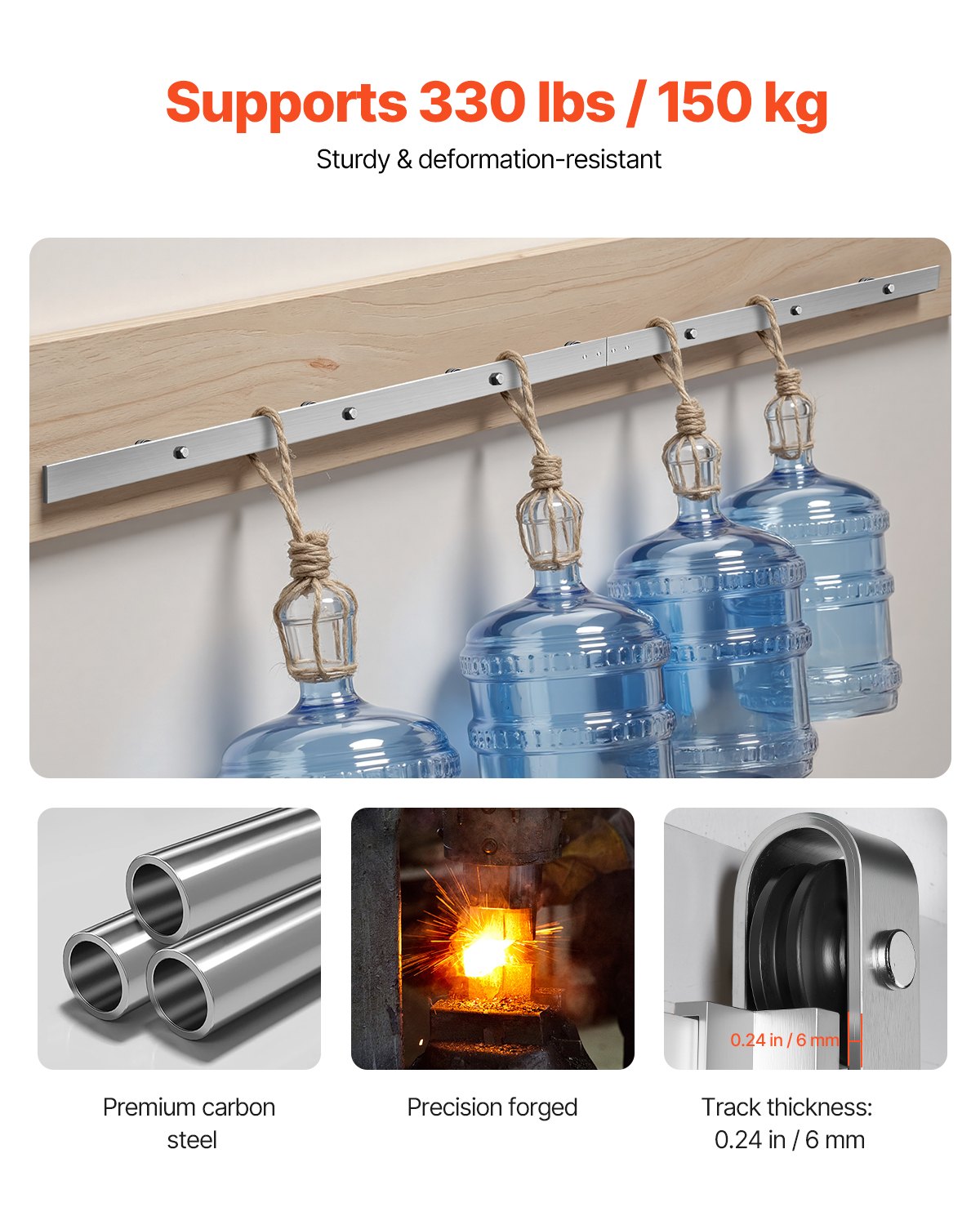 VEVOR sustav kliznih vrata 2,44 m, okov za klizna vrata, nosivost 150 kg, kompatibilan sa širinom od 107 do 122 cm i debljinom od 34,92 do 44,45 mm, izdržljiva tračnica i valjak u obliku slova J