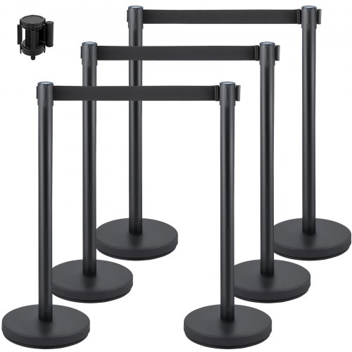 VEVOR 6-dijelni stupići za kontrolu gužve od željeza i čelika, crni, duljina remena, traka za zaštitu, stupići, stupići za kontrolu reda, stupići za zaštitu od 33 kg za pregrađivanje