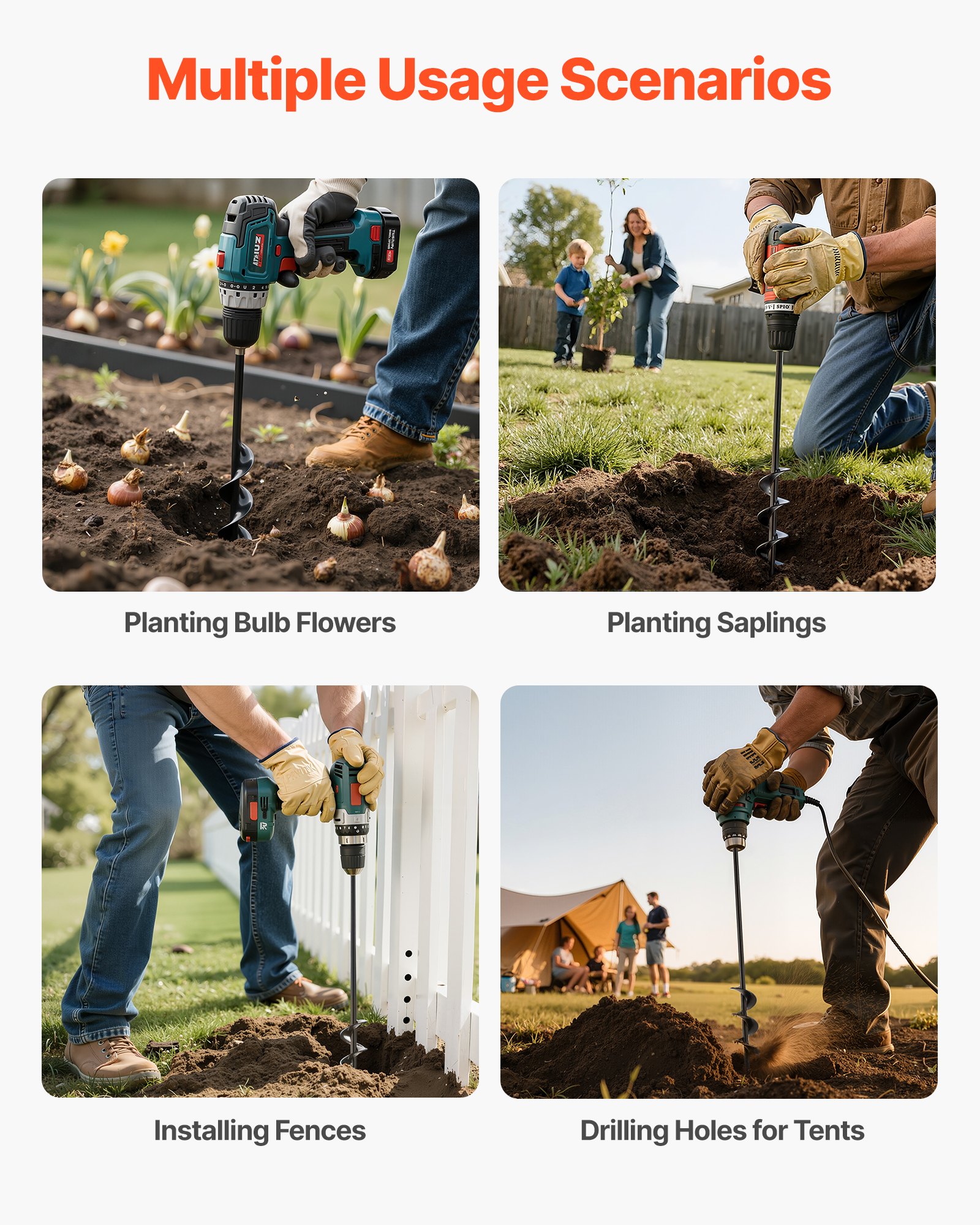 VEVOR svrdlo za zemlju za bušilicu, vrtno svrdlo 40 x 420 mm izrađeno od čelika Q235, za šesterokutna svrdla od 3/8 inča, kopač rupa za stupove, kopač rupa, alat za kopanje za sadnju i bušenje