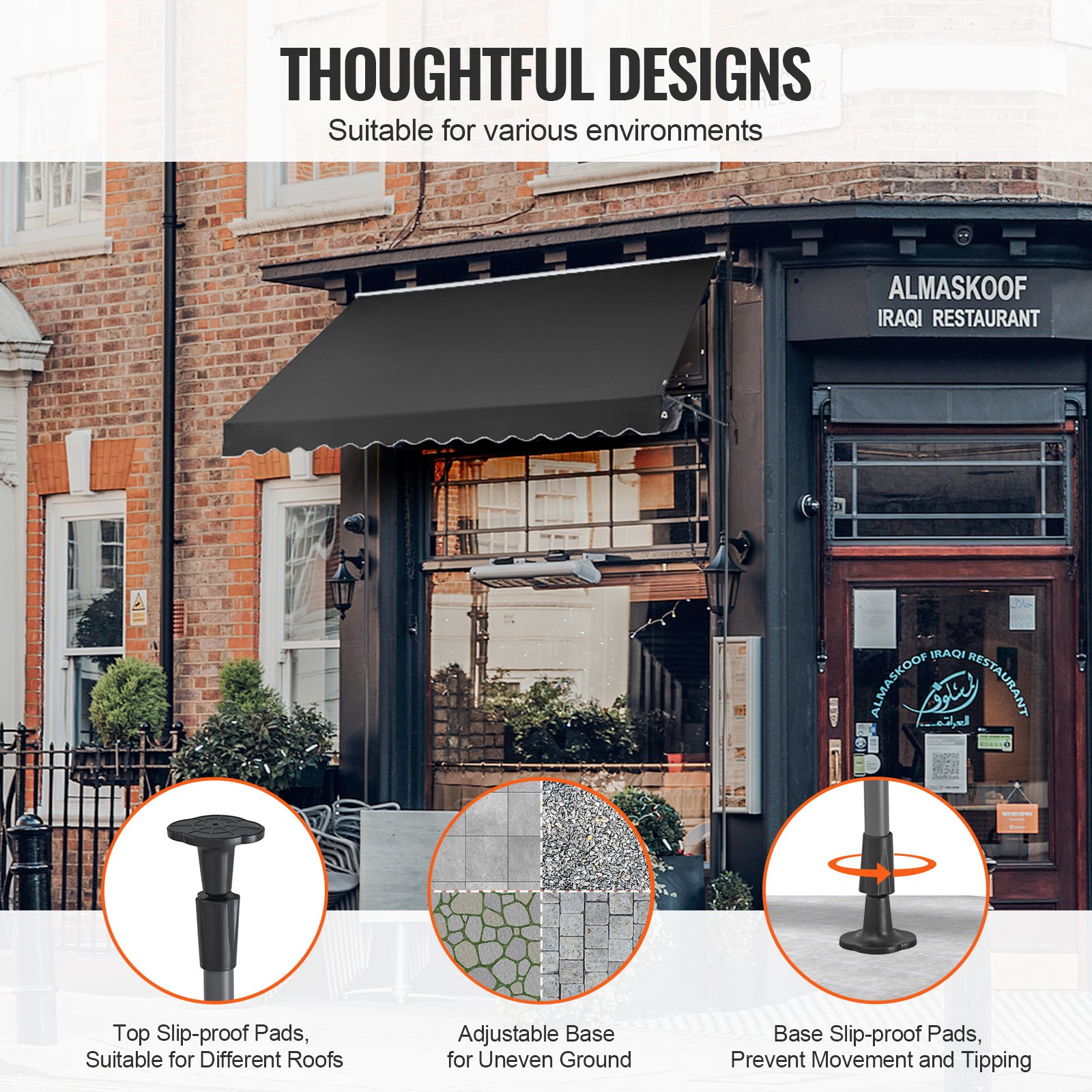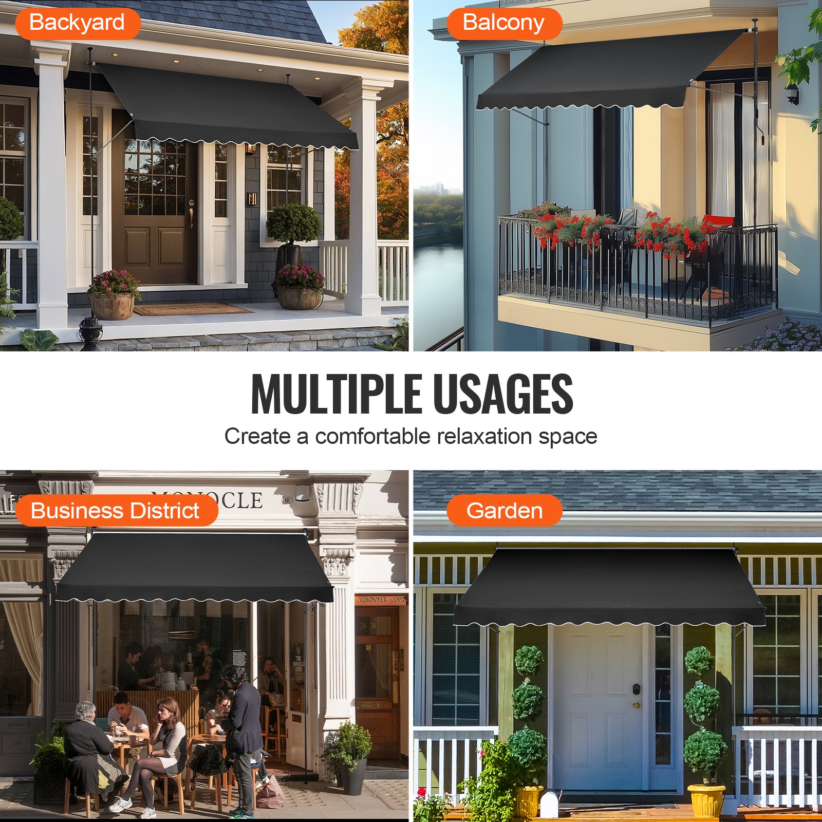 VEVOR Tenda sa stezaljkom 350 x 120 cm, Tenda za balkon s ručnom ručicom, Tenda za sunce, Natkrivena tenda za terasu, Podesiva visina od 218 do 309 cm, Tenda za terasu/balkon/vrt, Crna