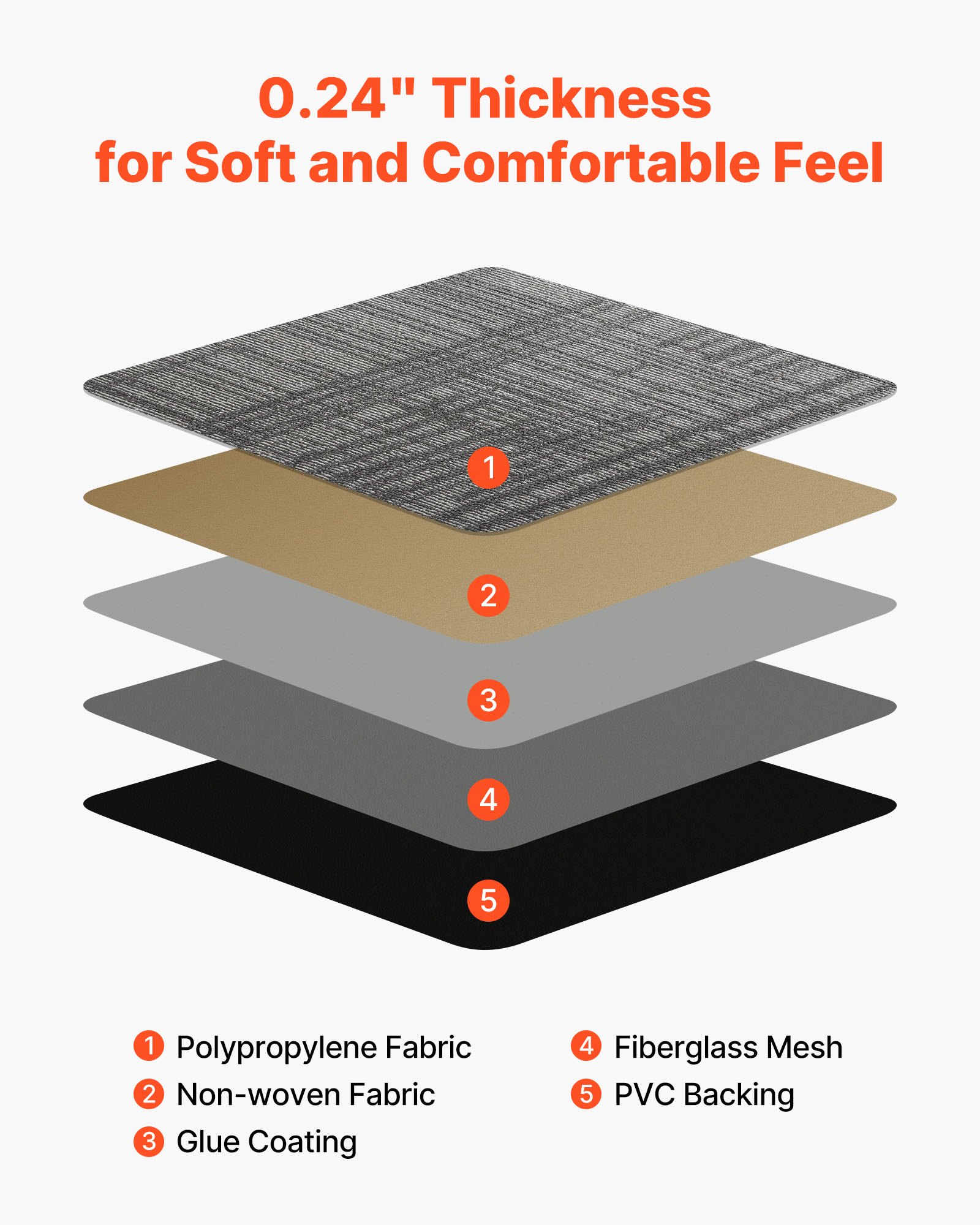 Debljina: 0,24 in / 6 mm, Količina: 24 komada, Dimenzije artikla: 20 x 20 x 0,24 in / 500 x 500 x 6 mm, Glavni materijali: Polipropilen i asfalt, Specifikacije: 20 x 20 in, Neto težina: 32,63 lbs / 14,8 kg, Površina: 66,6 sq ft, Boja: Višebojna, Broj modela artikla: SXP-LQ-CGL01