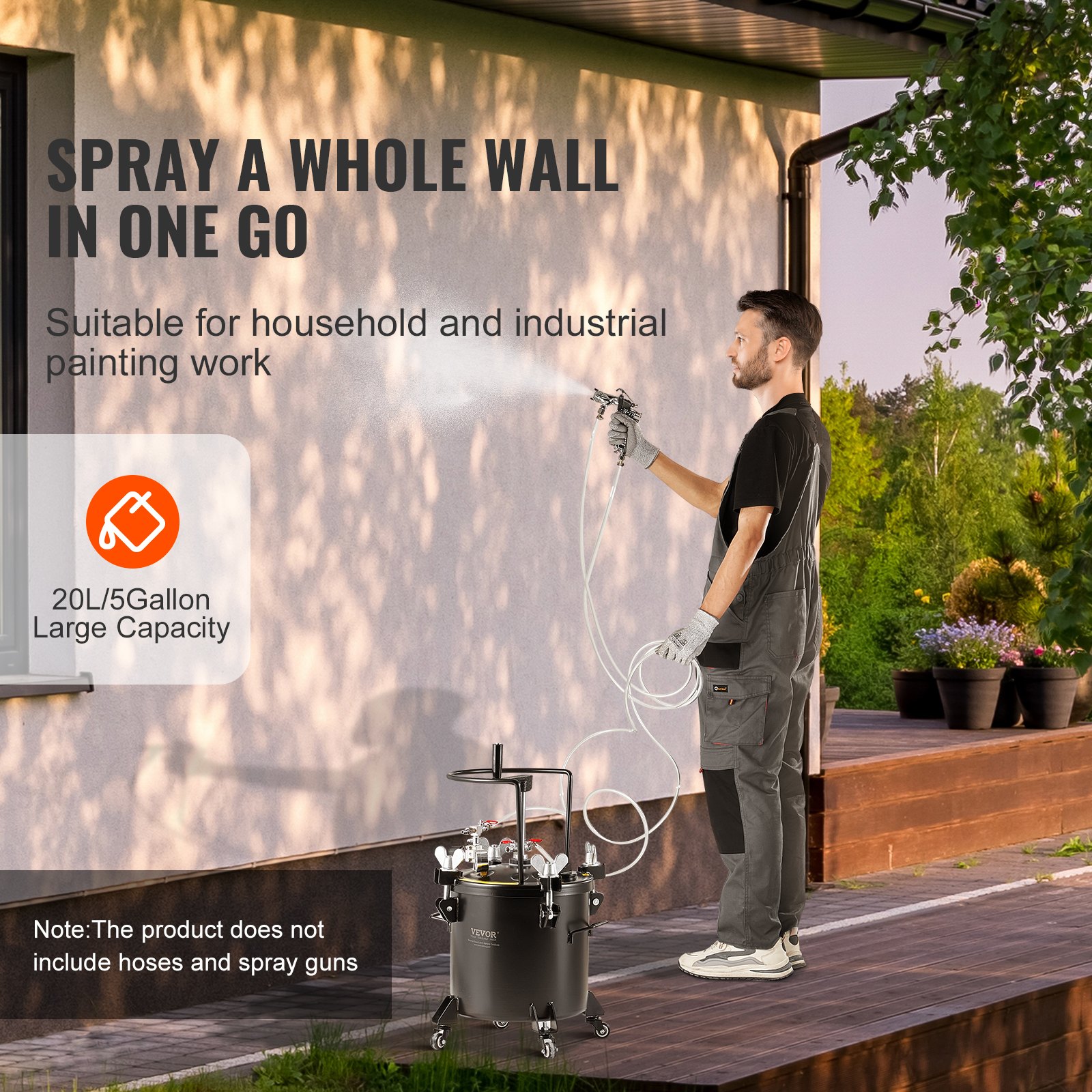 VEVOR tlačni raspršivač za boju u spreju, spremnik pod tlakom od 20 l, podesivi tlak od 70 psi, spremnik za boju pod tlakom s kotačima i brtvilom za popravak curenja, za uređenje doma i industrijsko bojanje