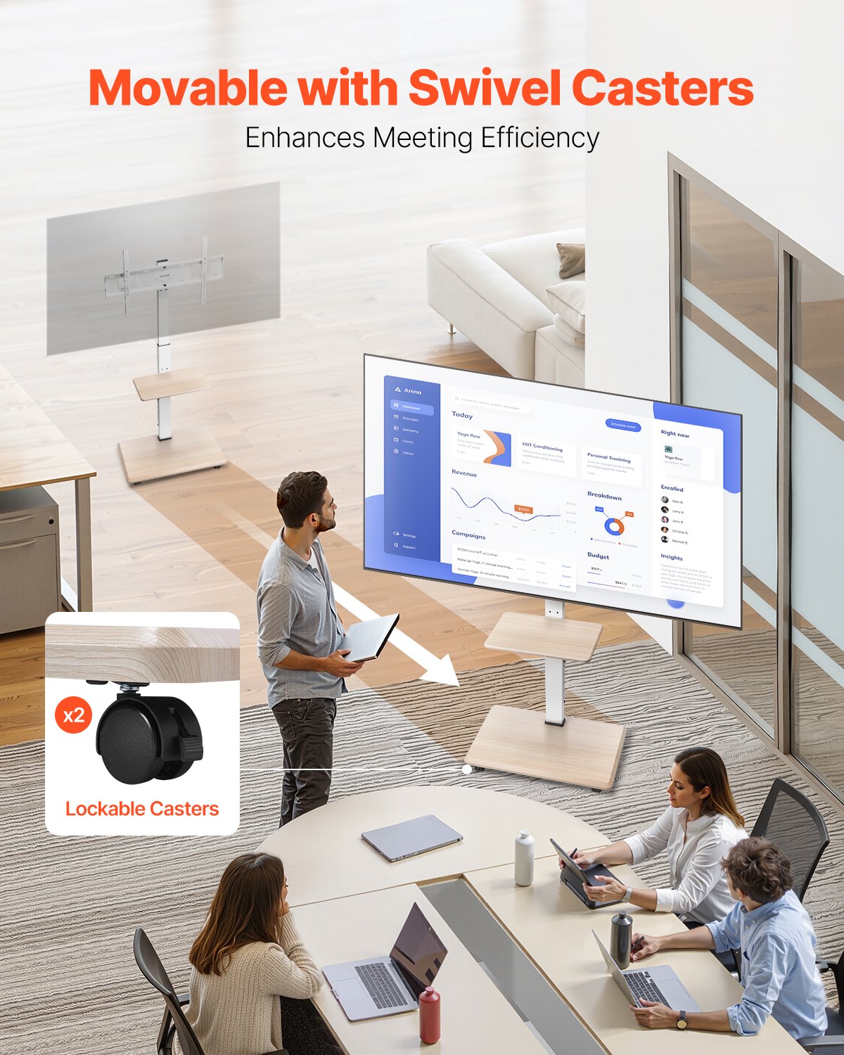 VEVOR stalak za TV na kotačiće za televizore od 812,8-1778 mm do 40 kg, rotacija lijevo-desno 25° i Nosač za TV s policom i podesivim visinom za spavaću sobu i dnevni boravak (maks. 600 x 400 mm)