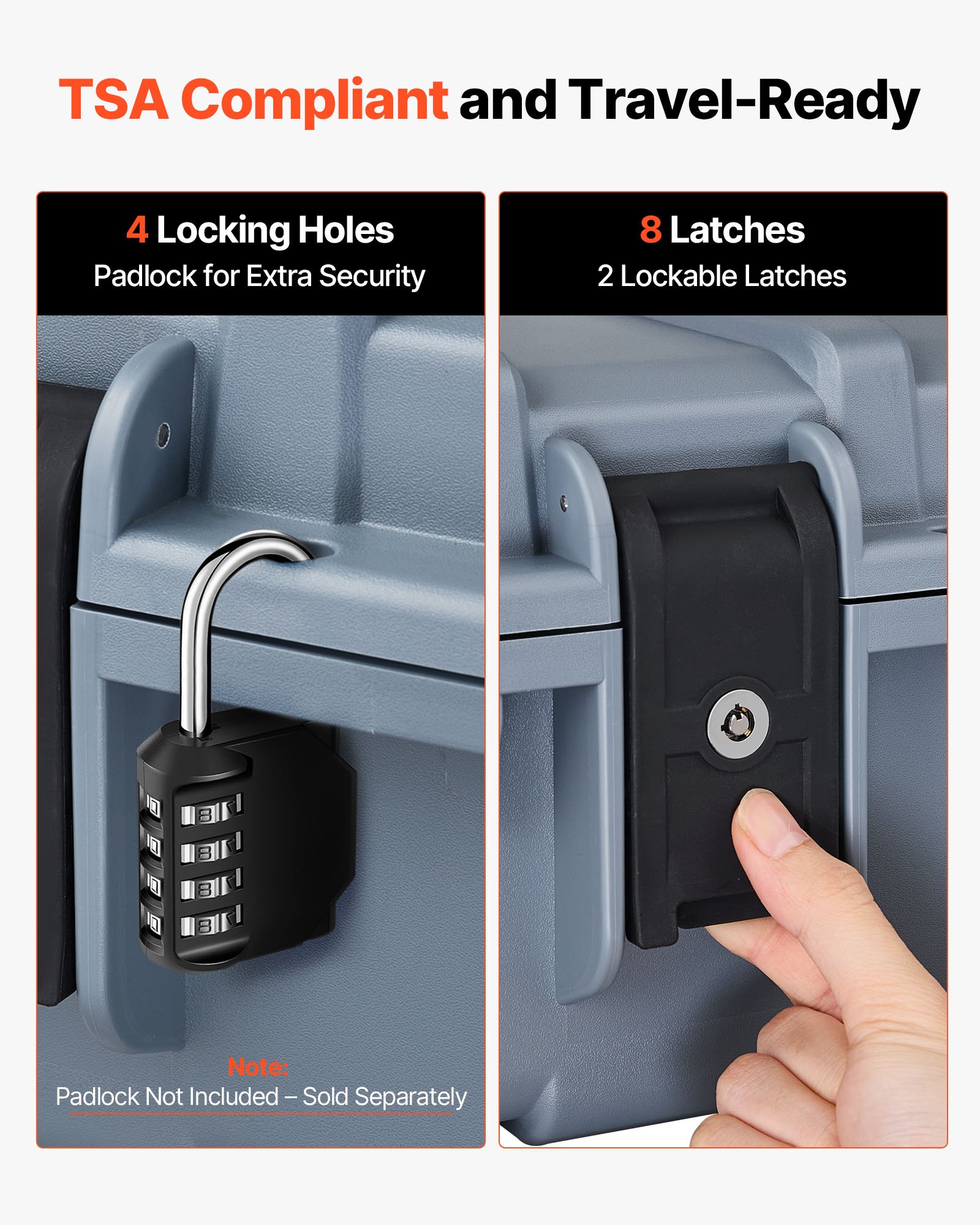 VEVOR Tvrda futrola za pištolj za duge puške, futrola za pušku koja se može zaključati s prethodno izrezanim pjenastim umetcima, futrola za pohranu pištolja na kotačiće, vodootporna IP67, 139,1 x 43,5 x 18,8 cm, siva