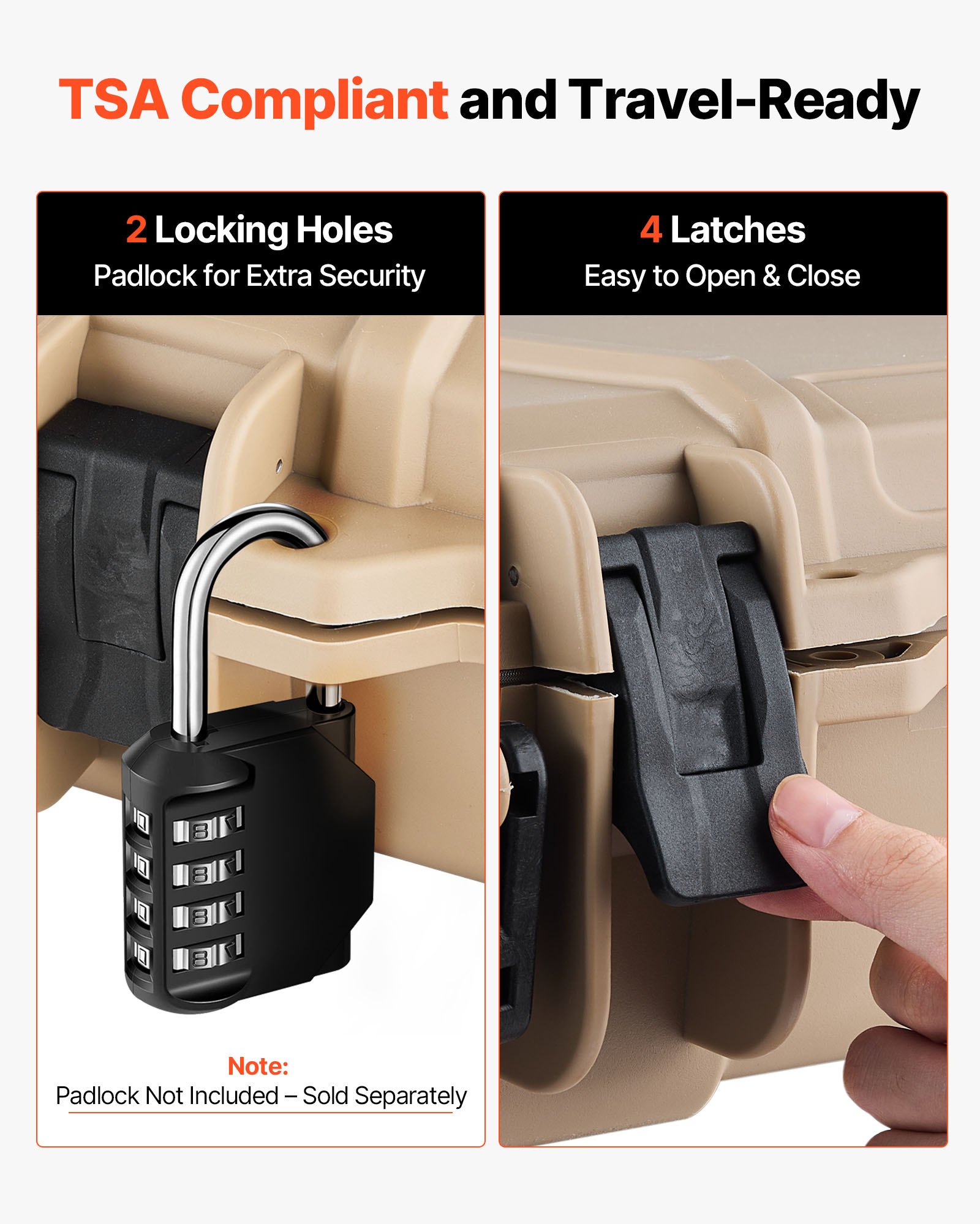 VEVOR Tvrda futrola za pištolj za duge puške, futrola za pušku koja se može zaključati s prethodno izrezanim pjenastim umetcima, futrola za pohranu pištolja na kotačiće, vodootporna IP67, 109 x 41 x 15,5 cm, kaki
