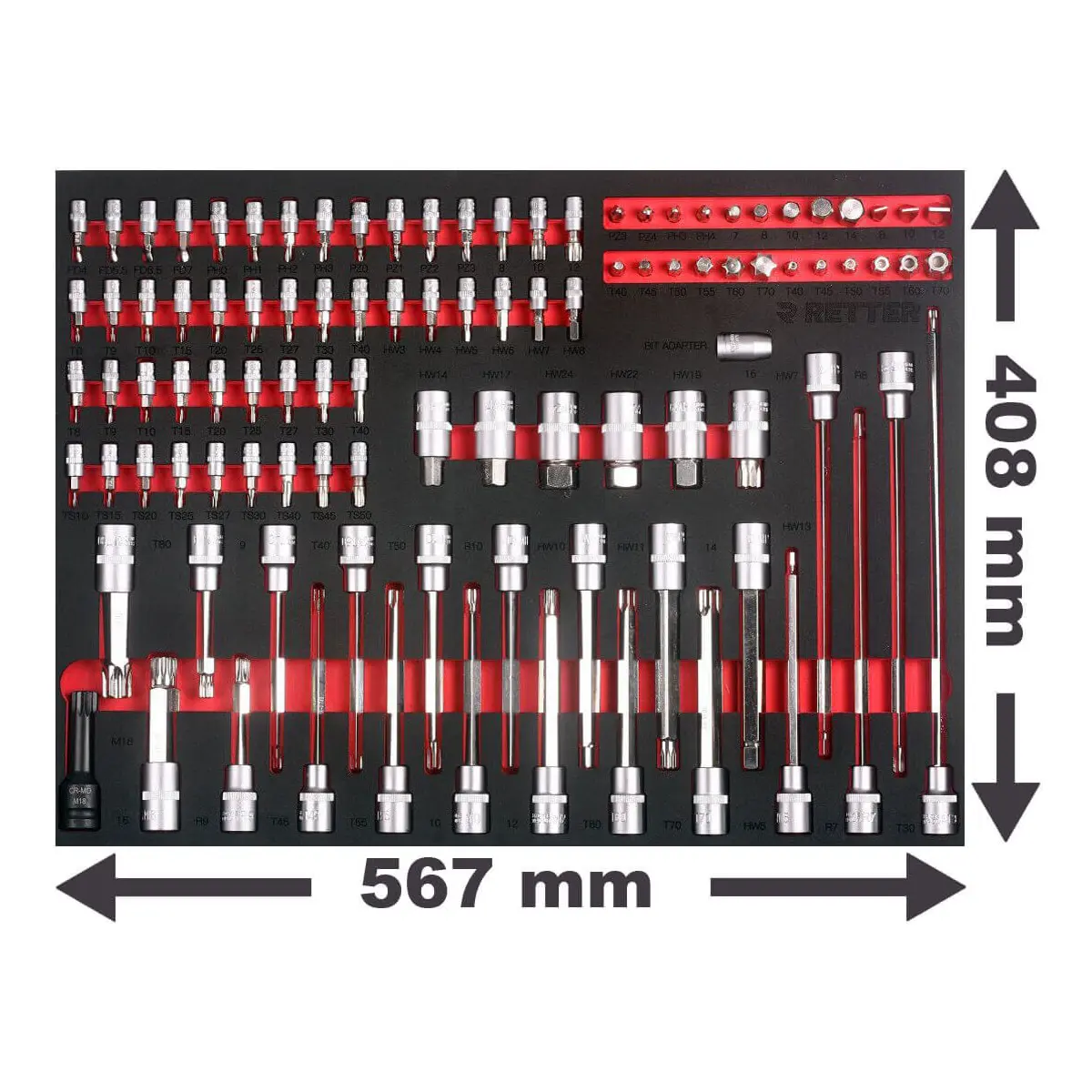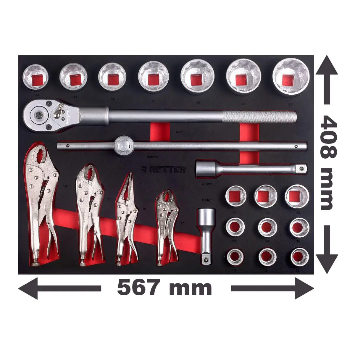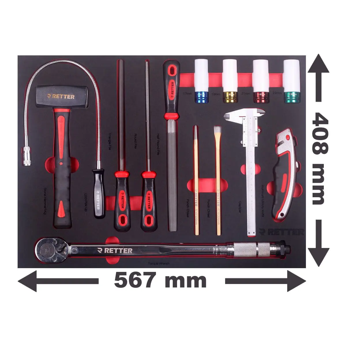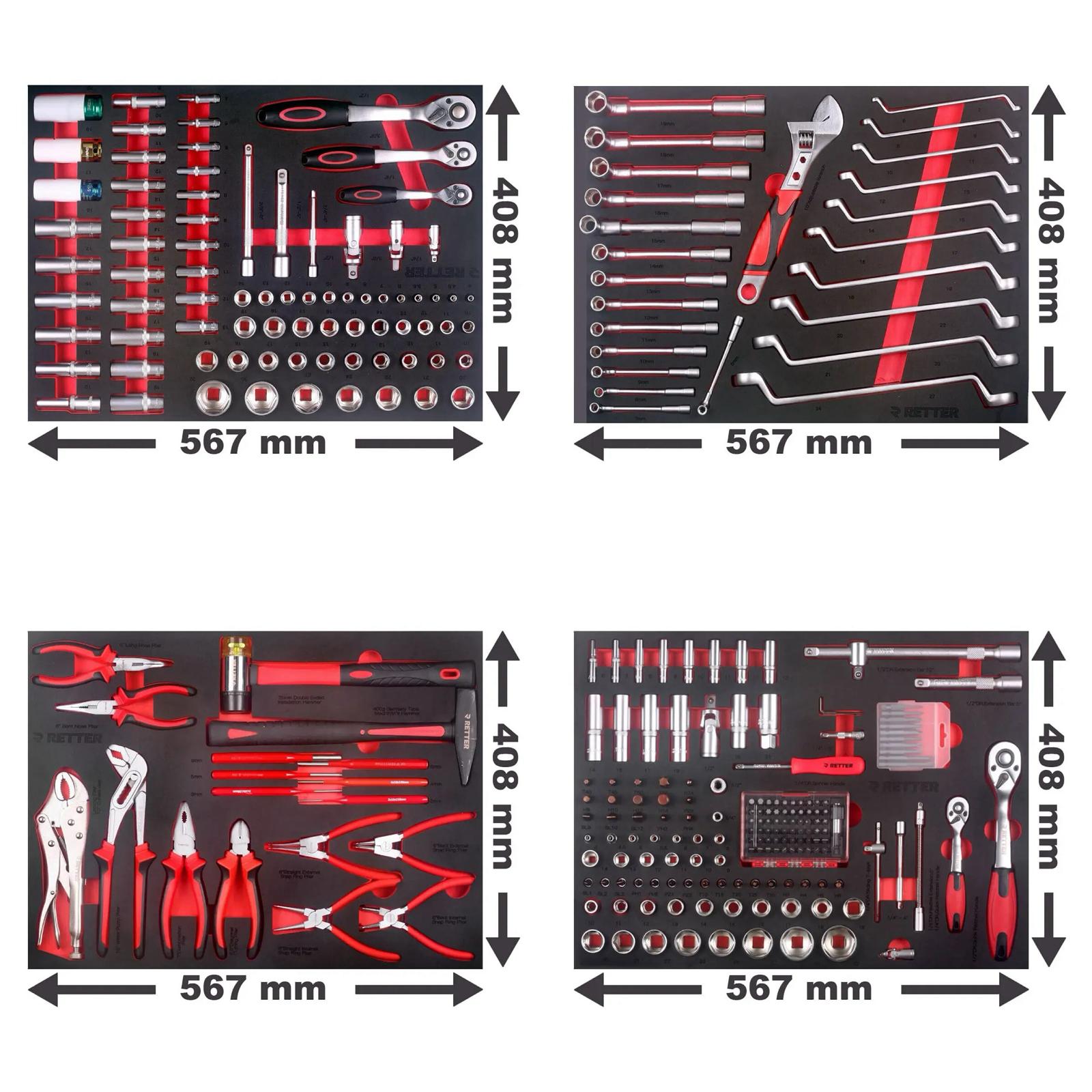 8 dvostrukih okastih ključeva: SW 6 x 7 – 8 x 9 – 10 x 11 – 12 x 13 – 14 x 15 – 16 x 17 – 18 x 19 – 20 x 22 mm 17 okastih ključeva s otvorenim krajem: SW 6 – 7 – 8 – 9 – 10 – 11 – 12 – 13 – 14 – 15 – 16 – 17 – 18 – 19 – 22 – 24 – 27 mm 10 dvostrukih okastih ključeva, duboko savijenih: SW 6 x 7 – 8 x 9 – 10 x 11 – 12 x 13 – 14 x 15 – 16 x 17 – 18 x 19 – 20 x 22 – 21 x 23 – 24 x 27 mm hladno kovani kutni okasti kraj