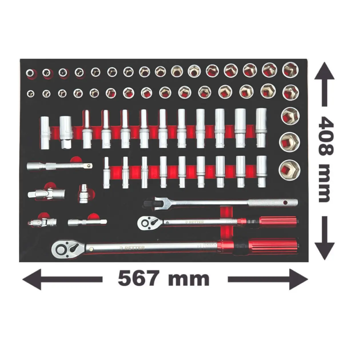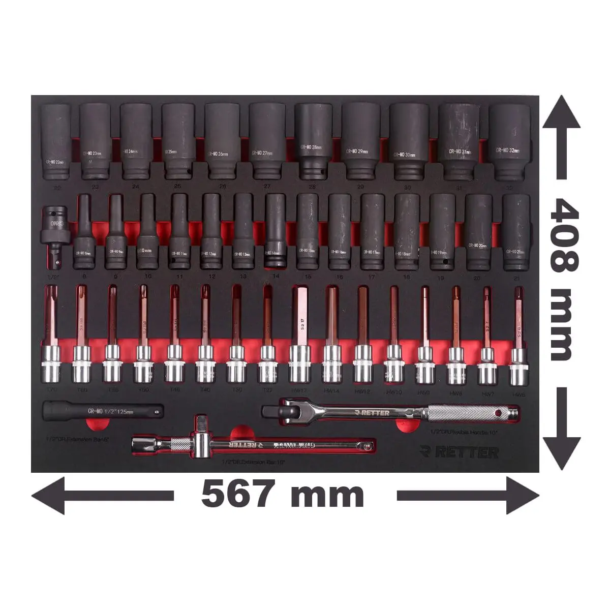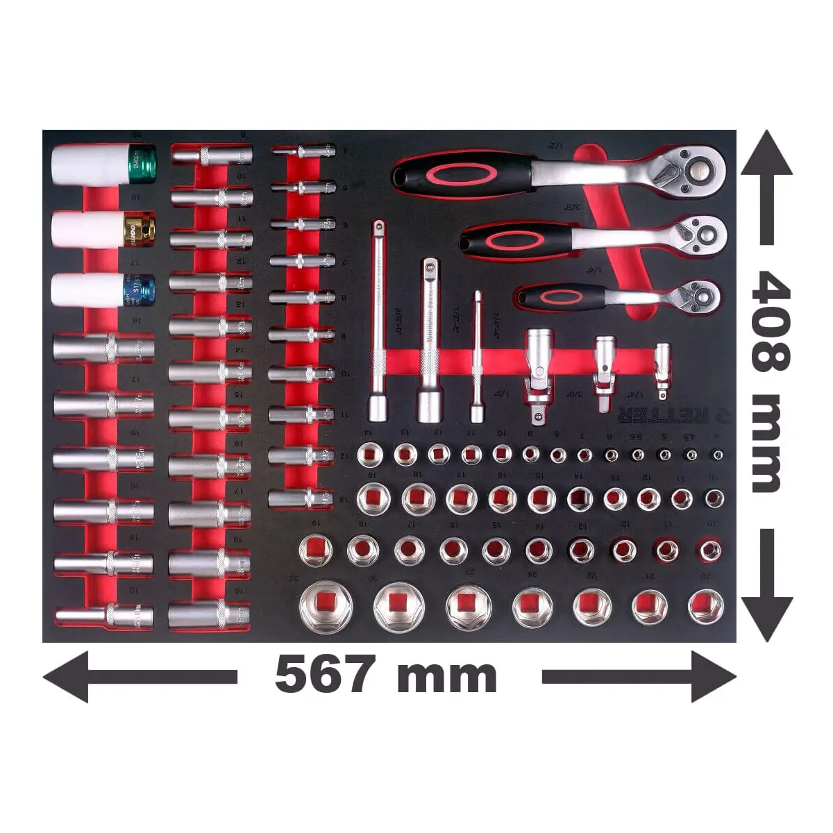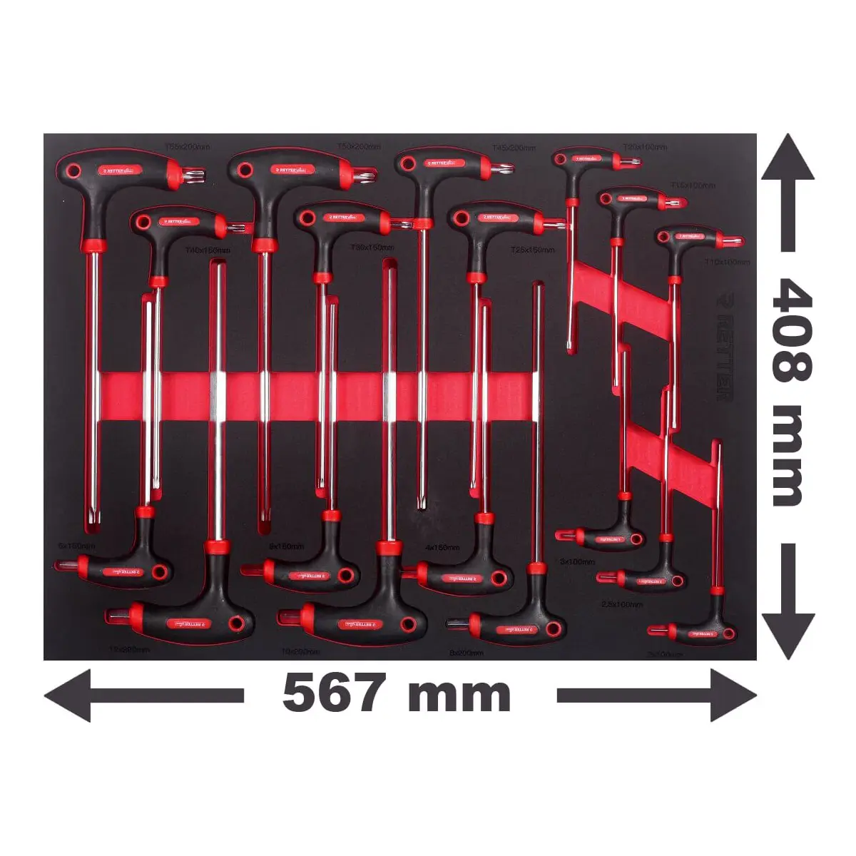 8 dvostrukih okastih ključeva: SW 6 x 7 – 8 x 9 – 10 x 11 – 12 x 13 – 14 x 15 – 16 x 17 – 18 x 19 – 20 x 22 mm 17 okastih ključeva s otvorenim krajem: SW 6 – 7 – 8 – 9 – 10 – 11 – 12 – 13 – 14 – 15 – 16 – 17 – 18 – 19 – 22 – 24 – 27 mm 10 dvostrukih okastih ključeva, duboko savijenih: SW 6 x 7 – 8 x 9 – 10 x 11 – 12 x 13 – 14 x 15 – 16 x 17 – 18 x 19 – 20 x 22 – 21 x 23 – 24 x 27 mm hladno kovani kutni okasti kraj