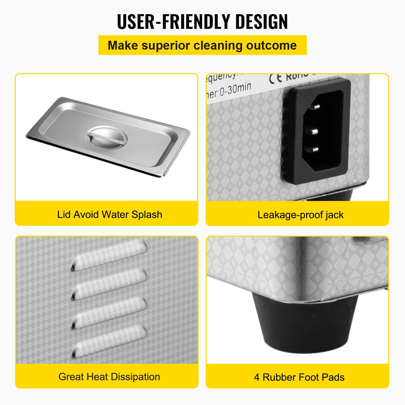 VEVOR ultrazvučni čistač 0,8 L, ultrazvučni uređaj za čišćenje 40 kHz, ultrazvučni čistač nakita 24 W, digitalni ultrazvučni čistač s LED zaslonom, ultrazvučni uređaj za čišćenje naočala