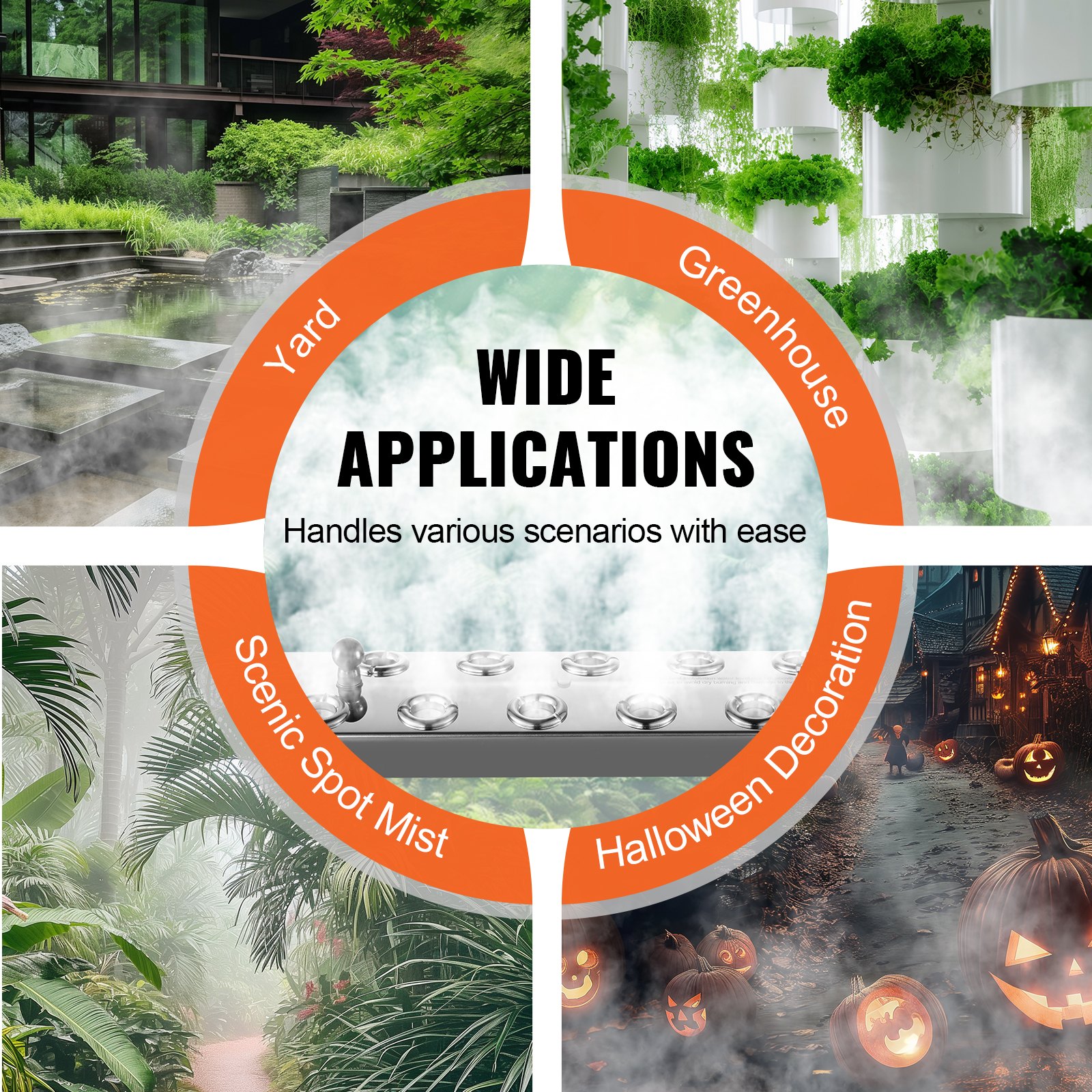 VEVOR ultrazvučni zamagljivač, 10 glava, ultrazvučni zamagljivač 7000 ml/h, stroj za maglu s vodootpornim napajanjem od 280 W IP67, plutača, zamjenski diskovi, za ribnjak, vrt, kamenjar, staklenik, ukras za Noć vještica