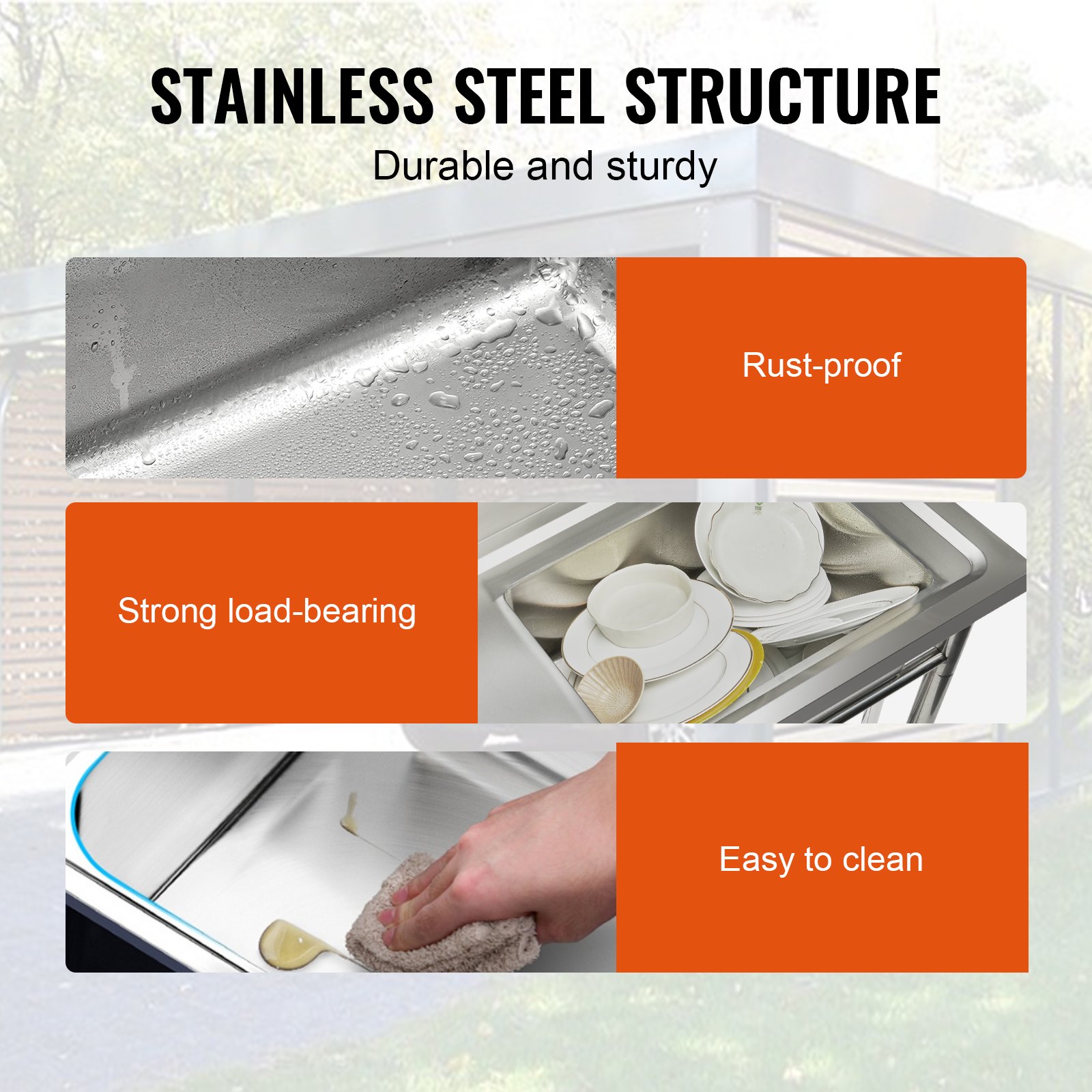VEVOR Umivaonik od nehrđajućeg čelika, samostojeći sudoper, uključujući slavinu i noge, 43 x 33 x 22 cm komercijalni pojedinačni sudoper za restoran, kuhinju, umivaonik s radnim stolom