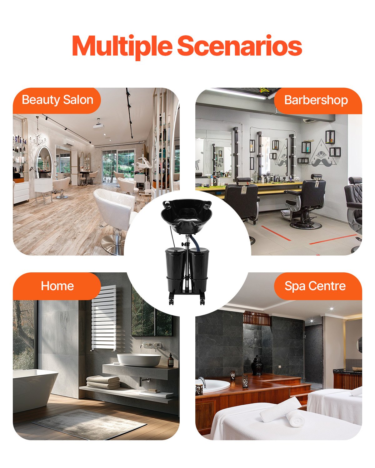 VEVOR Umivaonik za frizere, kada za pranje kose s električnom pumpom, uklj. 2 kante, 2 tuš glave, odvodno crijevo, umivaonik za ispiranje s podesivom visinom i kutom za frizerski salon, crni
