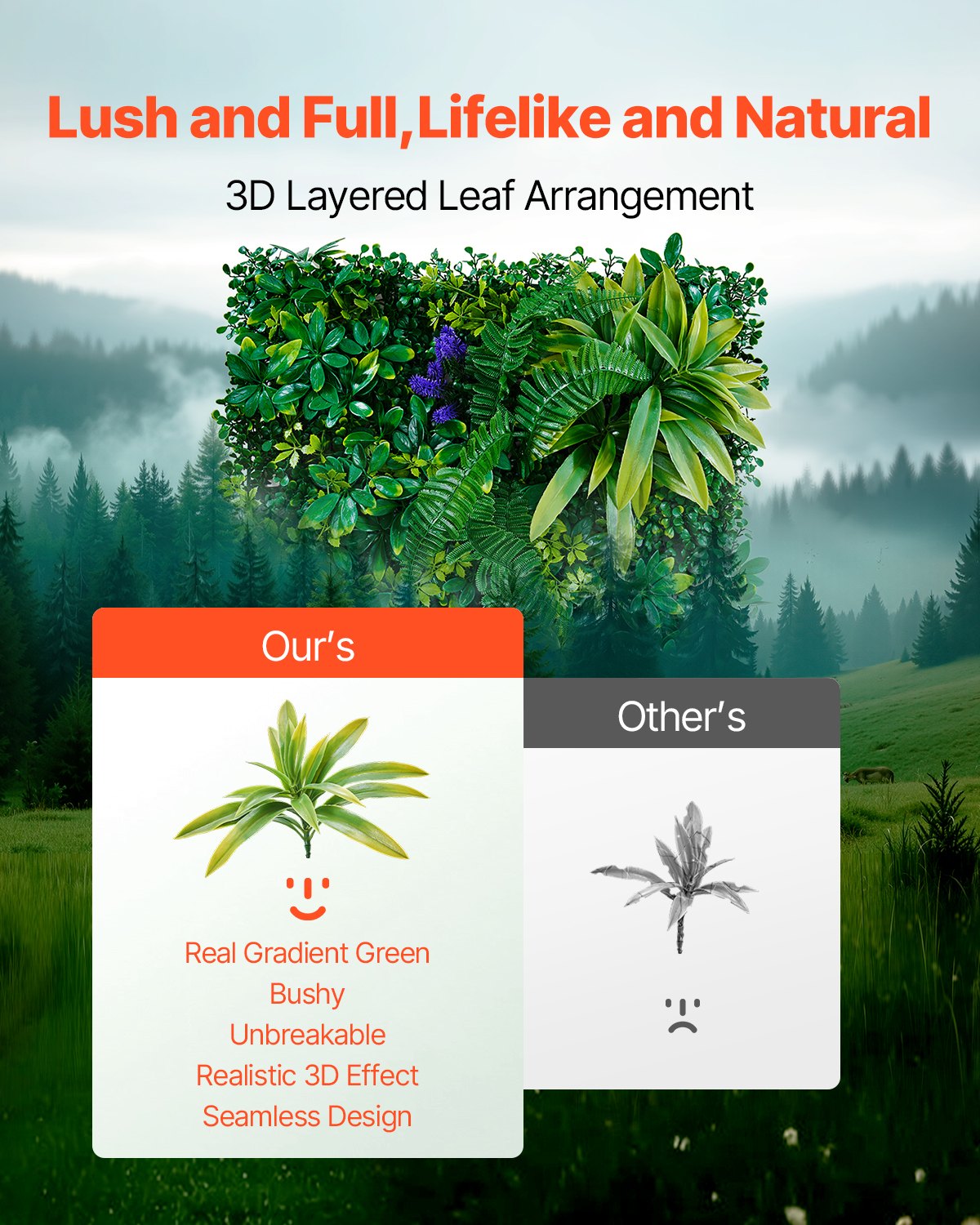 VEVOR Umjetna živica, 12 komada, 500x500x50 mm, 3D kombinacija, Zid od umjetnih biljaka, Zelena dekoracija i pokrov za ogradu od bršljana, Zaštitna obloga za privatnost, Zaštita za živicu za vrt