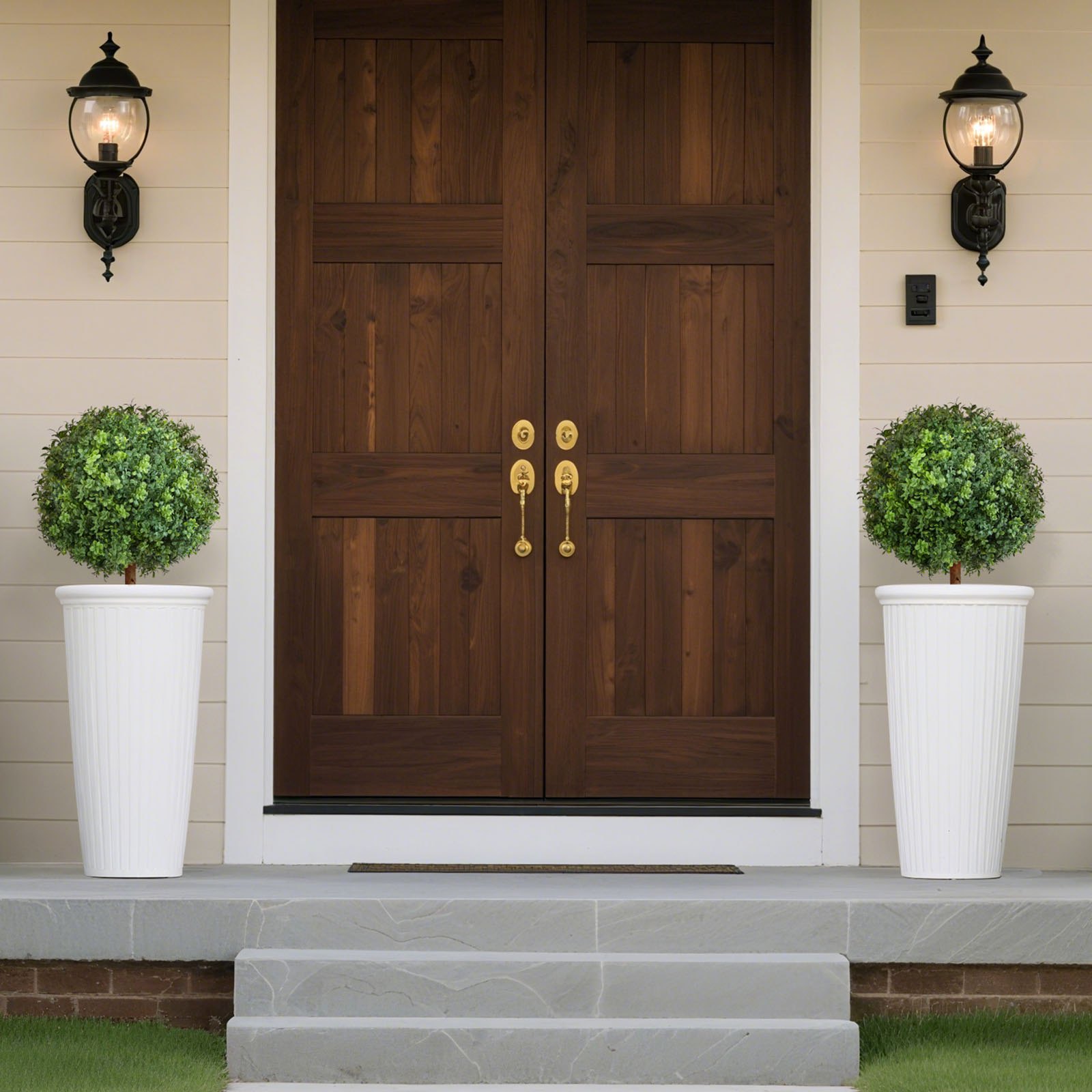 VEVOR Umjetni šimšir s krošnjom za zemlju, set od 2, umjetna biljka 559 mm, ukrasna biljka, za ukras, trijem, vanjsku i unutarnju upotrebu, terasu, vrt, balkon, dvorište