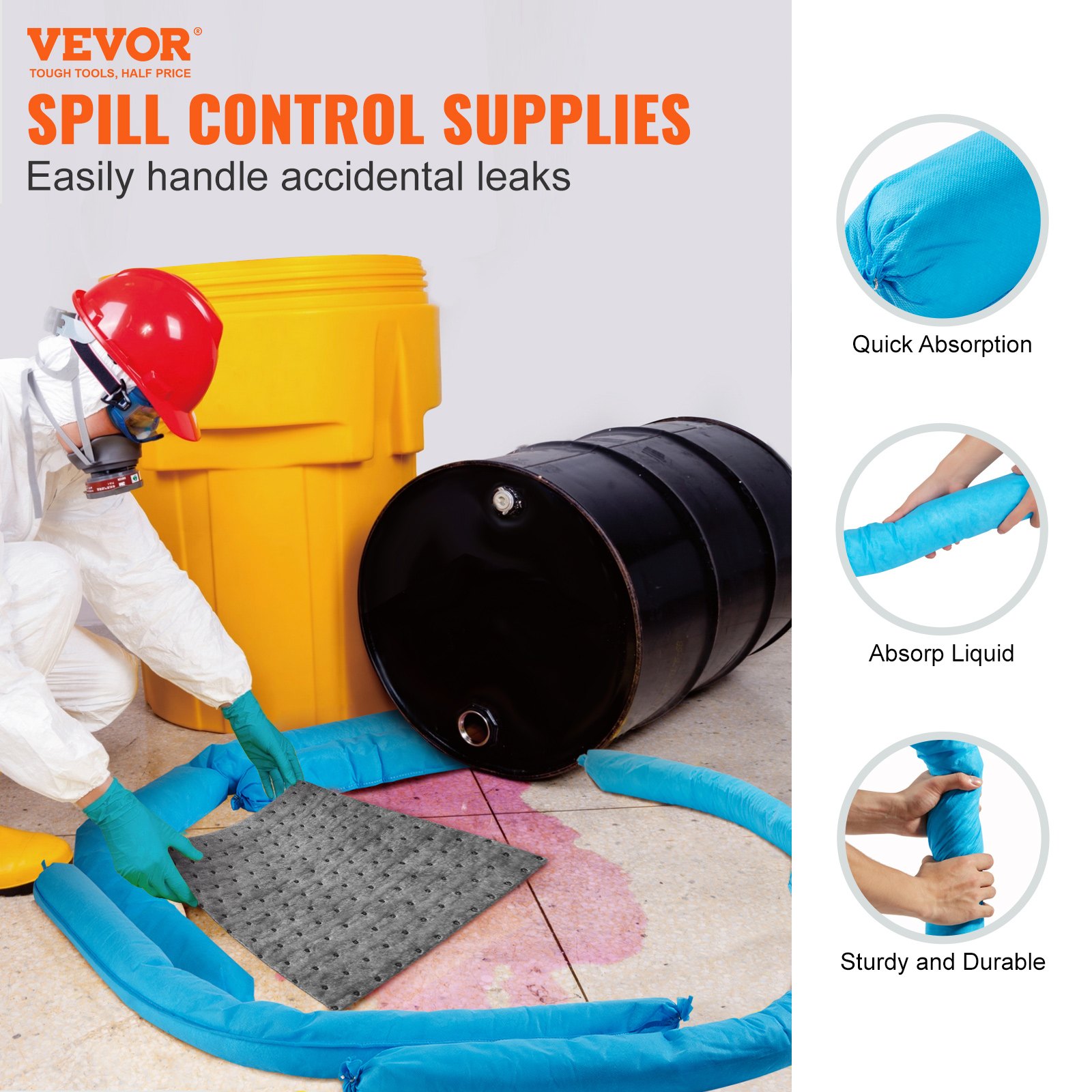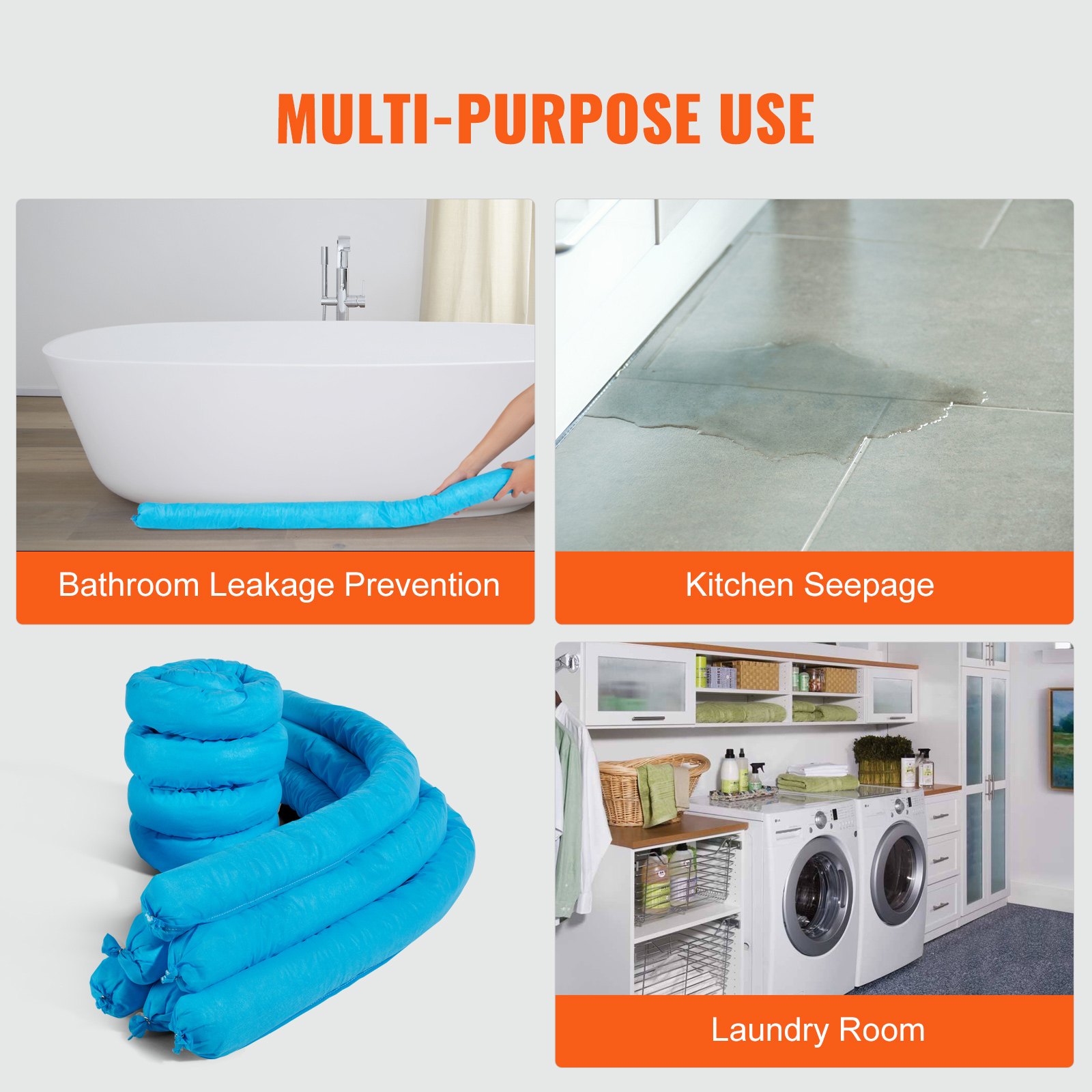 VEVOR Univerzalna upijajuća čarapa, zmijski uzorak koji upija vodu, 75,7 L, 12 komada