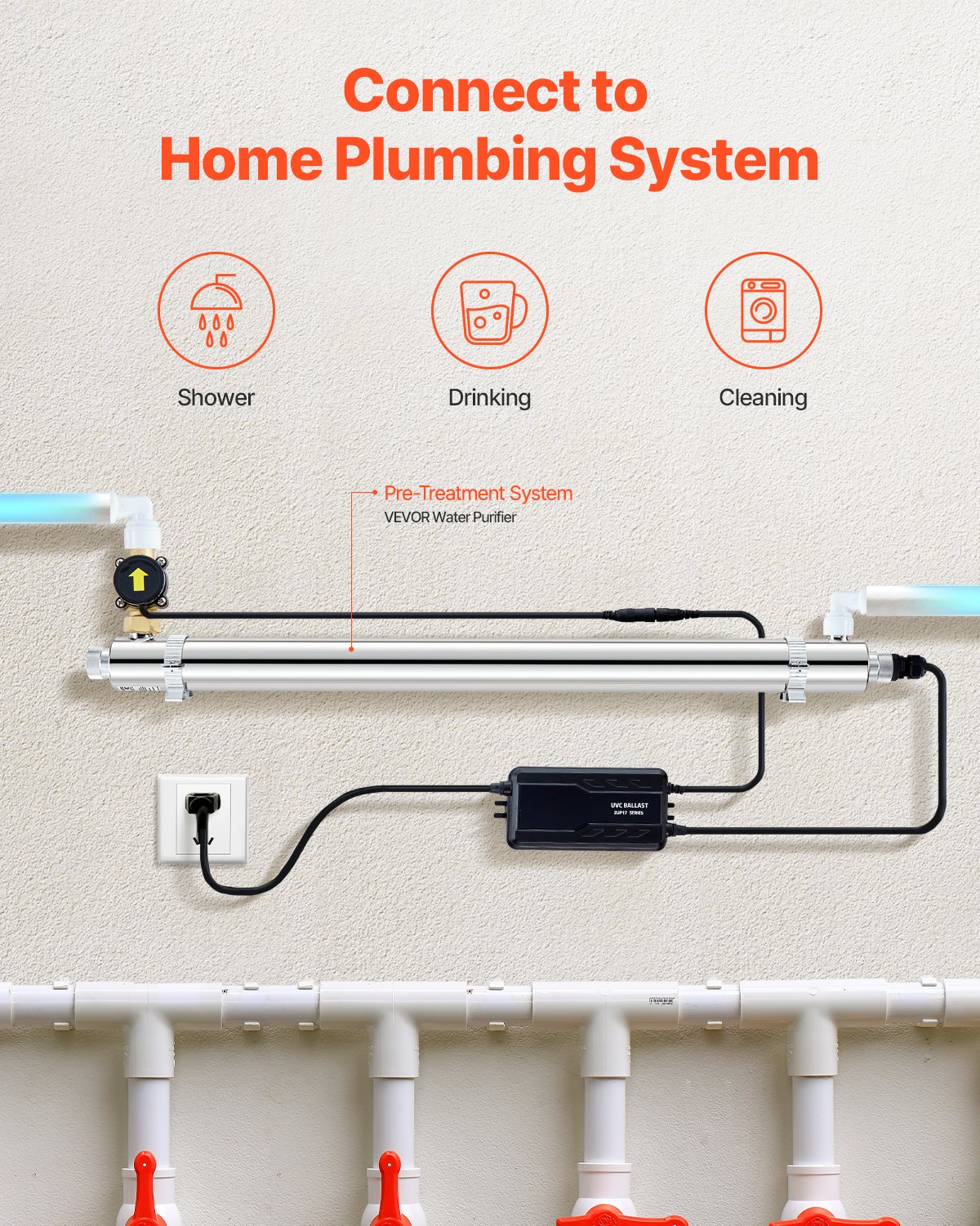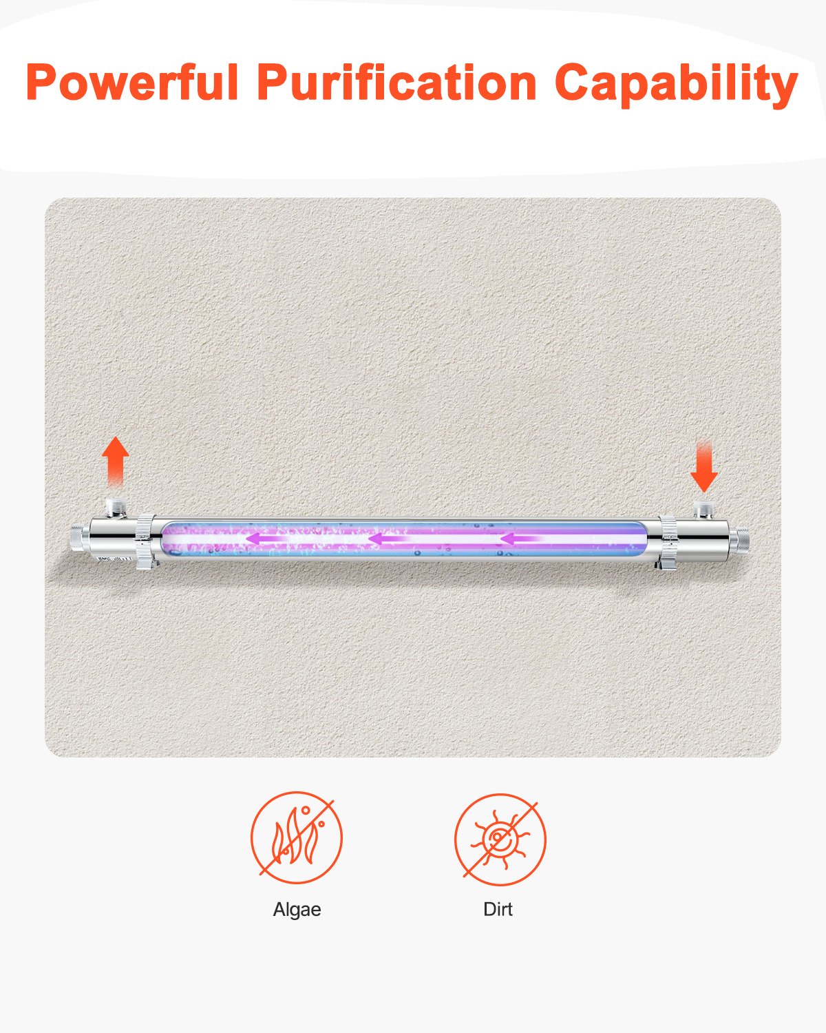 VEVOR UV pročišćivač vode 56W 45,4L/min Svestrani ultraljubičasti filter za pročišćavanje vode s kućištem od nehrđajućeg čelika, UV filter za vodu za cijelu kuću s kvarcnim kućištem, pogodan za tuširanje/piće/čišćenje