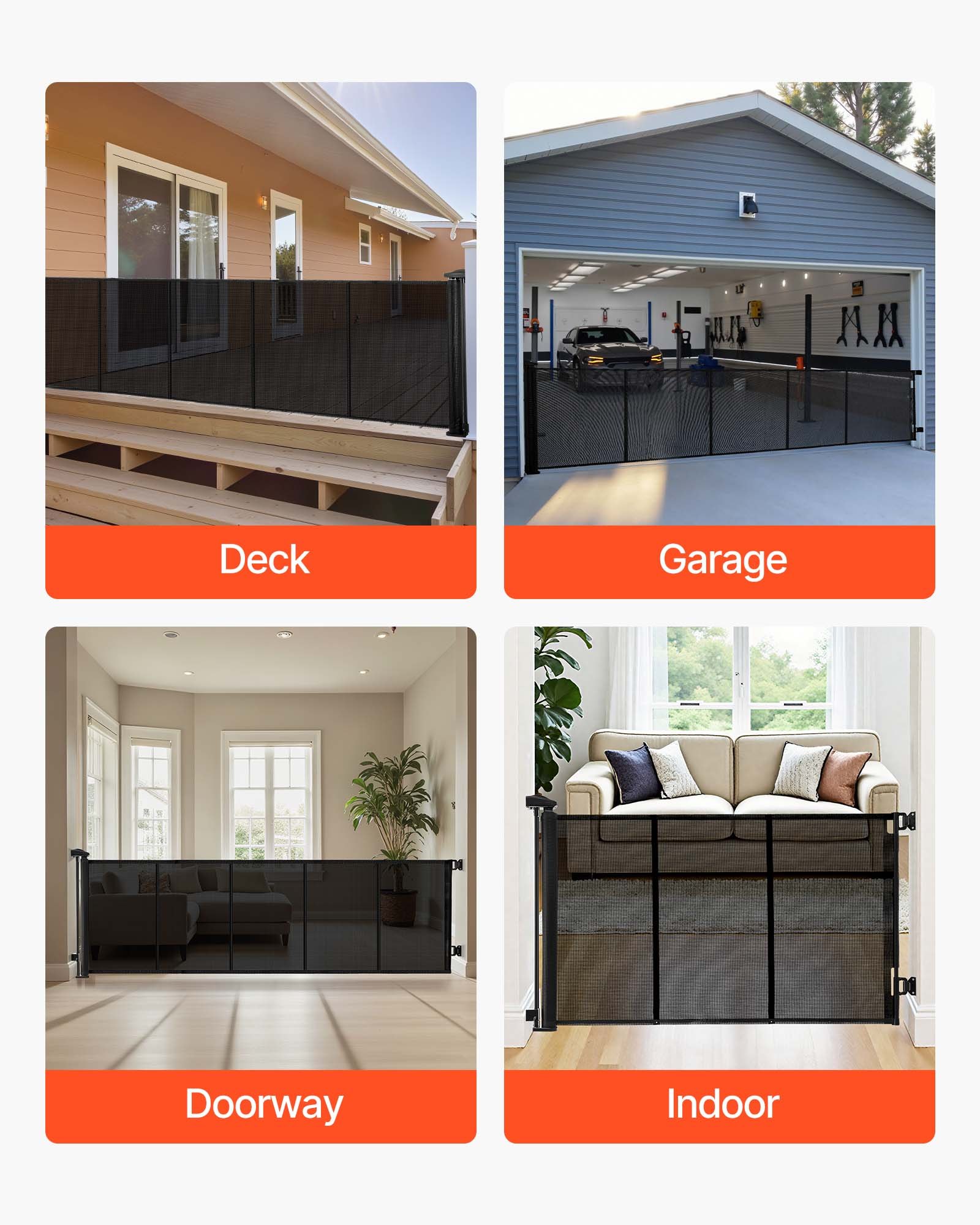 VEVOR Uvlačna dječja vrata/vratica za kućne ljubimce, Produžuje se do 310 cm (Š) / 795 mm (V), Vrata za stepenice sa sigurnosnom bravom, Mrežasta sigurnosna vrata za stepenice i hodnike, Za unutarnju/vanjsku upotrebu, Crna