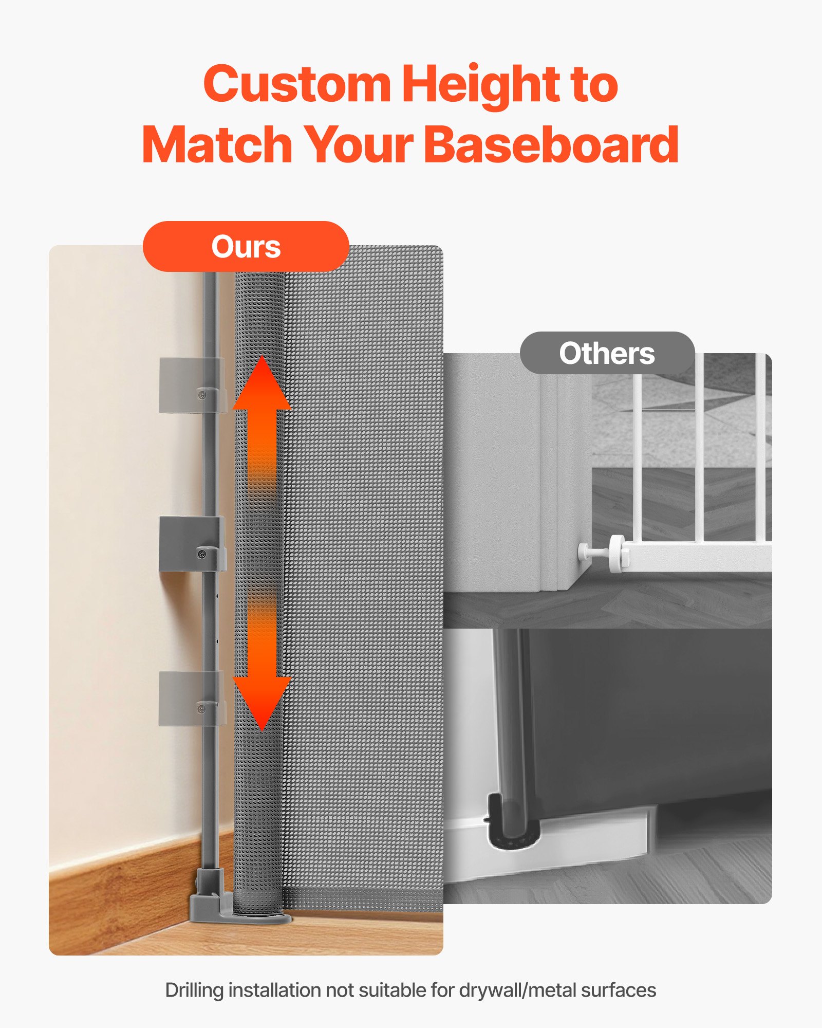 VEVOR Uvlačna dječja/pasja vrata, Protežu se do 143 cm širine / 795 mm visine, Stepenišna vrata sa sigurnosnom bravom, Mrežasta sigurnosna vrata za stepenice i hodnike, Unutarnja/Vanjska, Siva