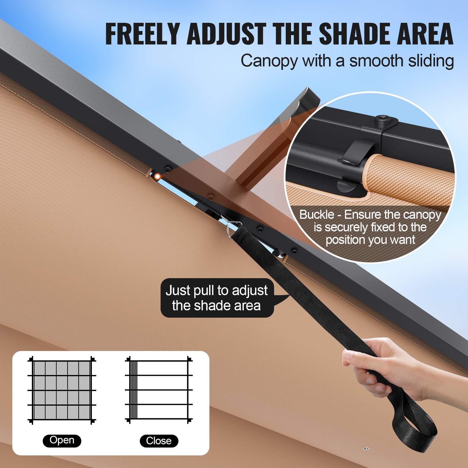 VEVOR 10’x10′ uvlačiva vanjska pergola s nadstrešnicom, aluminijska pergola s uvlačivom nadstrešnicom, moderna pergola s krovom za terase, vrtove, palube, dvorišta (bež)