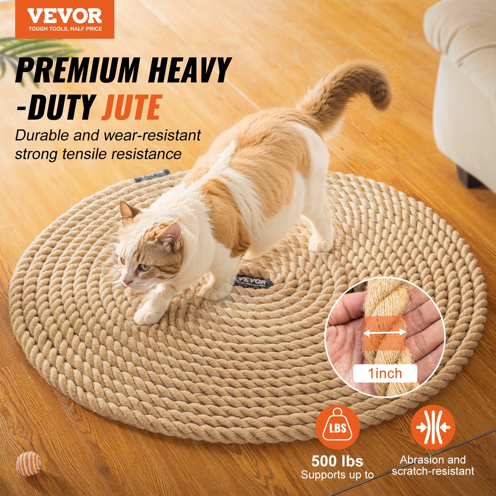 promjer: 25,4 mm / 1 inč, glavni materijal: uže od jute za teške uvjete rada, nosivost: 227 kg / 500 lbs, težina proizvoda: 7,7 kg / 16,98 lbs, broj modela artikla: GL1-100FT, duljina: 30,48 m / 100 ft, broj niti: 3