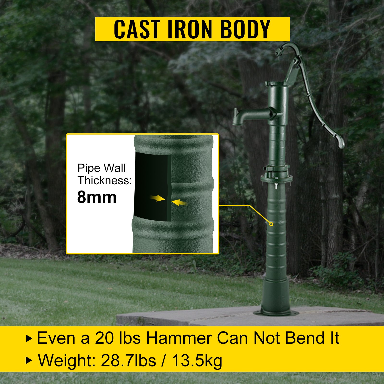 VEVOR Stalak za pumpu od lijevanog željeza za ručnu pumpu, 22,86 x 22,86 x 66 cm, Stalak za vrtnu pumpu s premazom u spreju, stijenka cijevi debljine 8 mm, pogodan za vrt, ribnjak, dvorište itd.